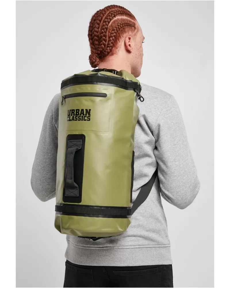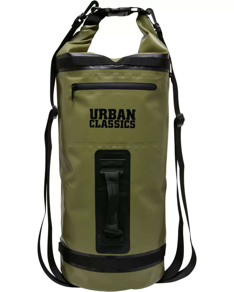 Tento hybrid batohu a batohu je dokonalým společníkem pro všechny outdoorové aktivity – dokonce i na vodě. Je vyrobena z vodoodpudivého PVC a lze ji přehodit pomocí dvou plátěných popruhů s nastavitelnou velikostí. Integrovaná rukojeť na zadní straně umožňuje přenášení jako běžnou tašku. Pro upevnění dalších zavazadel je k dispozici přidaný systém háčků, jakož i různé smyčky, kroužky a klipy, které jsou chytré a praktické možnosti. Batoh má také praktickou vodoodpudivou kapsu na zip a dvě průhledné síťované kapsy na přední straně. Na zadní straně je zdobena logem Urban Classics a pojme až tři litry.