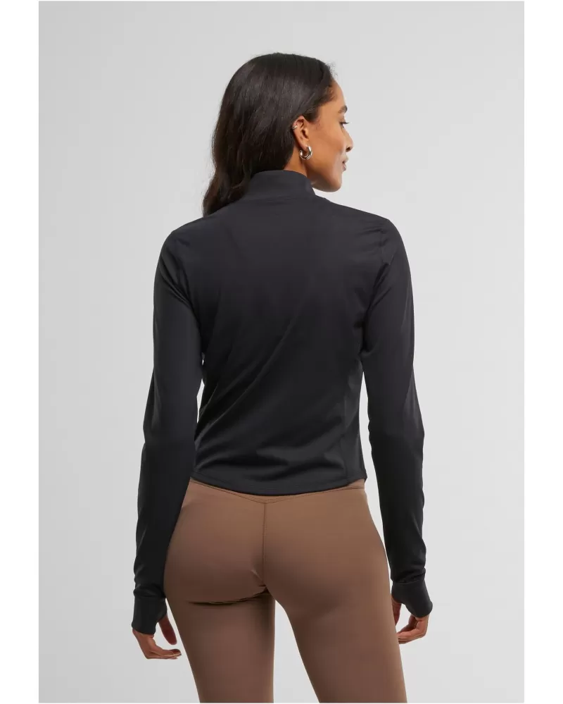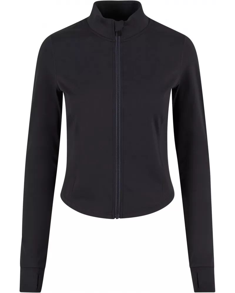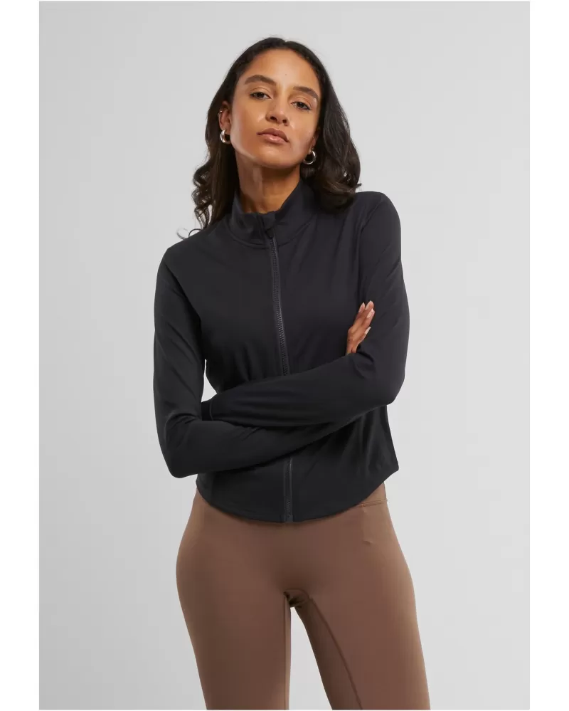 Tato dámská sportovní bunda nabízí elegantní, přiléhavý střih, který usnadňuje pohyb při lekcích jógy nebo ležérních výletech. Je vyrobena z měkké směsi tkaných materiálů, má pohodlné zapínání na zip a stojáček pro větší styl a krytí. Krátké a extra dlouhé všité rukávy vytvářejí moderní siluetu, díky čemuž je všestranným doplňkem jakéhokoli aktivního šatníku. Tato bunda je ideální pro vrstvení přes sportovní oblečení nebo pro každodenní nošení a kombinuje praktičnost s moderním designem.