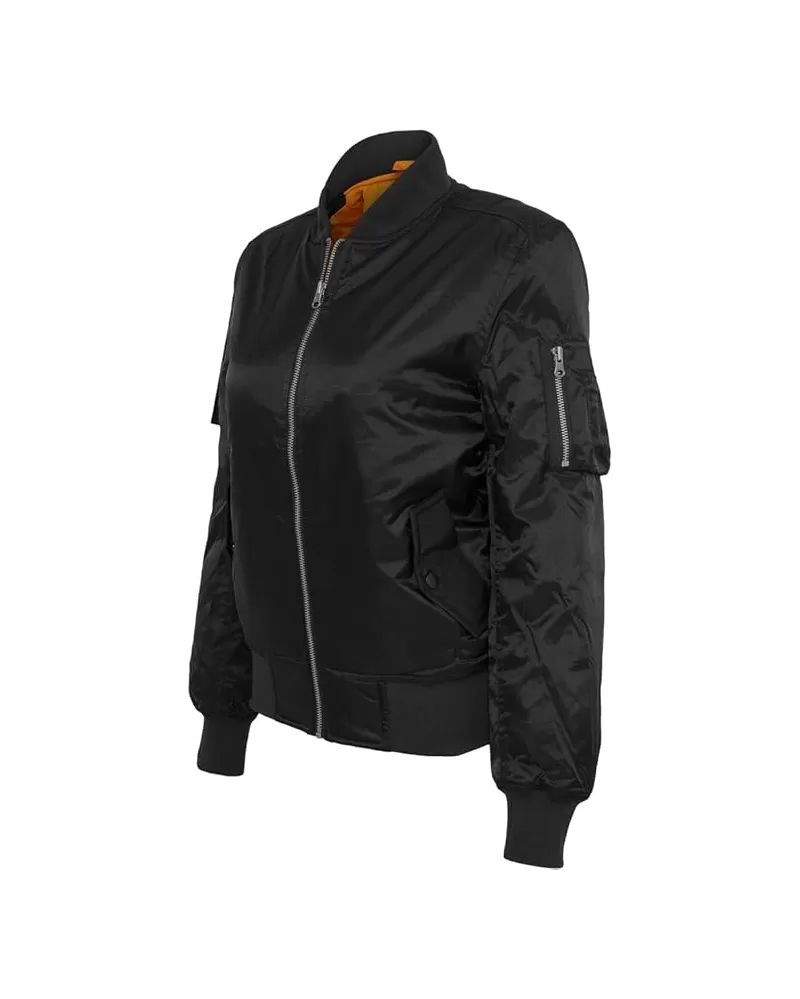 Dámská bunda Bomber URBAN CLASSICS TB807. Je klasikou která chrání před deštěm, chladem, větrem. Bunda má stojáček, elastický pas, malá kapsa na rukávě, je lehce podšitá. Bunda má vnější tak i vnitřní kapsy. Je vhodná do sychravého počasí, do přírody, do města. Skožení materiálu: vnější: 100% nylon, podšívka 100% polyester. Praní na 30°C.