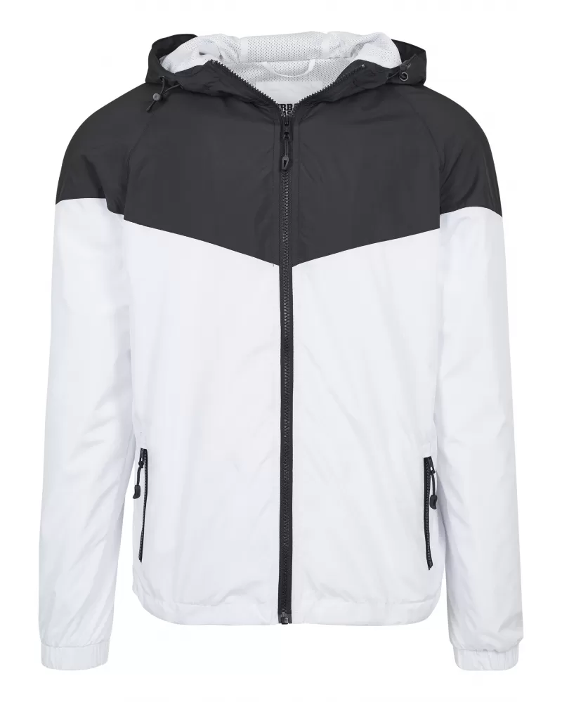 Pánská bunda URBAN CLASSICS TB2107 se vyznačuje raglánovými rukávy a zužujícím se barevným kontrastem na přední straně. Podšívka u bundy je síťovaná, kapuce má stahovací šňůrky, dvě boční kapsy. Bundu můžete využít na běžné nošení, i do nepřízně počasí, na procházky, do přírody. Složení materiálu:  podšívka 1: 100% polyester, mikrosiťovina, podšívka 2: 100% polyester, taft, vnější látka: 100% polyester.