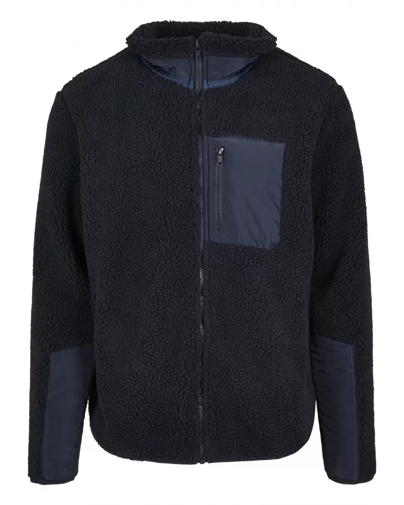 Bunda Sherpa pro muže, kteří touží po něčem speciálním na sebe. Mix materiálů a složení stylové pánské bundy upoutá pozornost. Podšití s látkou Sherpa je přerušeno chytrými nylonovými vsadkami, jako je našitá náprsní kapsa se zipem nebo stojáček. Neobvyklá bunda Urban Classics širokého střihu má přední zip a dvě boční kapsy na zip. Nabízí pravidelný střih.