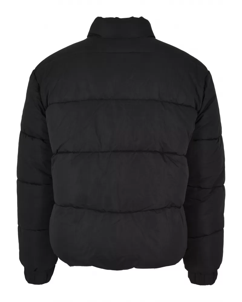 Silně vycpaná a krátký střih této pánské nafukovací bundy od Urban Classics zaručuje podrážděný vzhled a autentický současný styl streetwear. Bunda nabízí volný střih a je vybavena stojáčkem, zipem a stahovací šňůrkou se zarážkou na lemu. Pro větší pohodlí byly přidány elastické manžety. Pánská bunda je vyrobena z polyesteru a má taftovou podšívku.