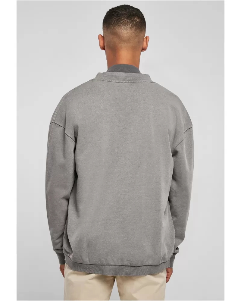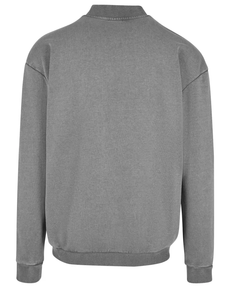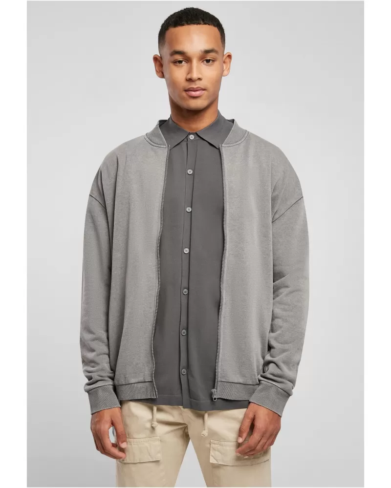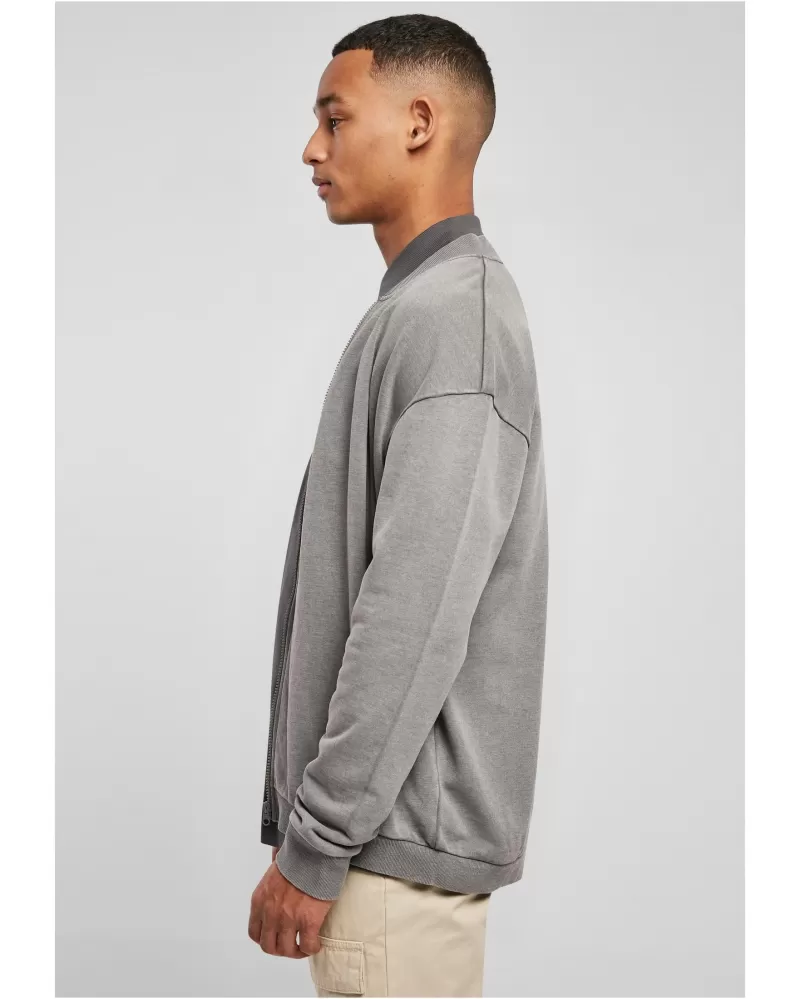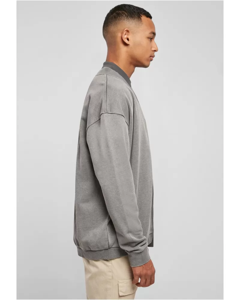 Městský módní kousek pro každou příležitost – tato pánská mikina na zip vyzařuje sebevědomý styl. Jeho malý stojáček je žebrovaný a má klasický tvar bomberu. Praktické jsou boční kapsy a komfort nošení maximalizují žebrované manžety na rukávech a lemu. Potní bomber má přirozeně oversized střih se spadlými rameny. Je vyrobena z přiléhavé froté látky.