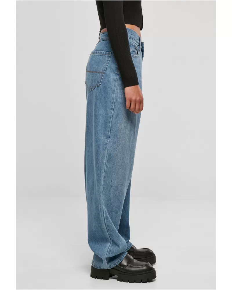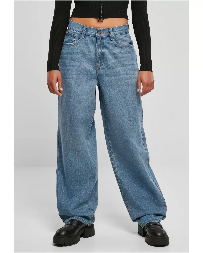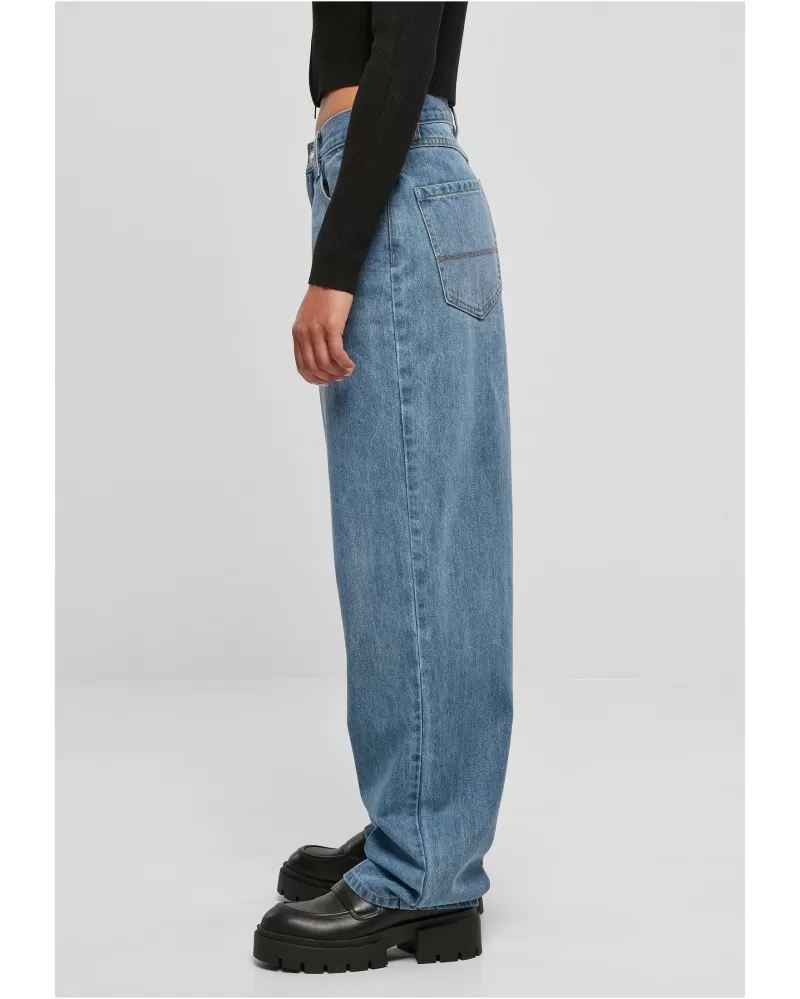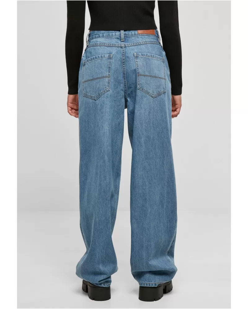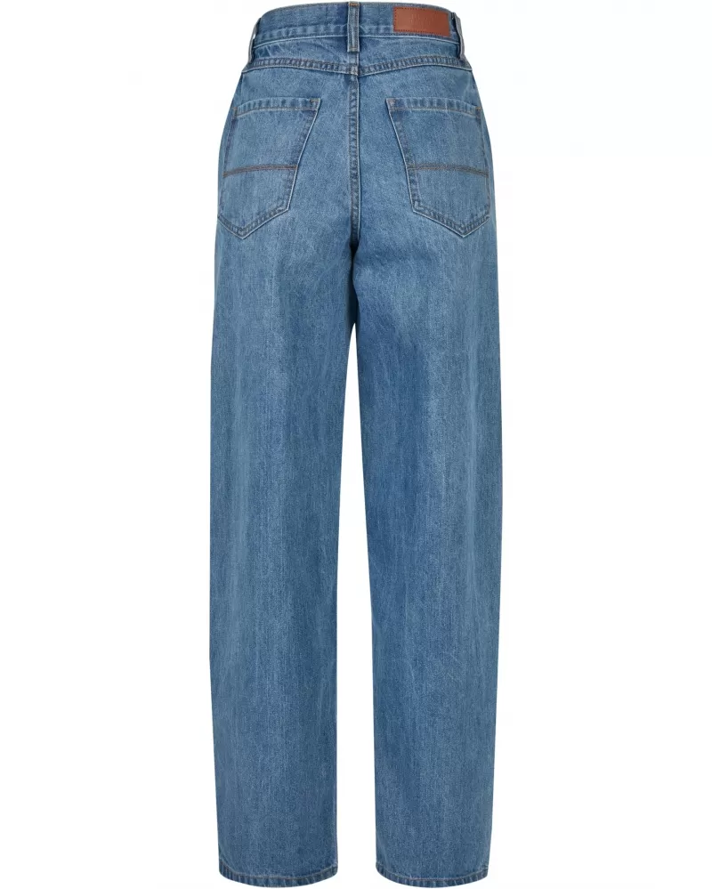 Tyto dámské džíny jsou vyrobeny v odvážném stylu 90. let, mají široké nohavice a vysoký pas. Džínoviny mají volný střih a tradiční tvar s poutky na opasek, bočními kapsami a zadními kapsami. Jsou vyrobeny z pevné džínové bavlny.