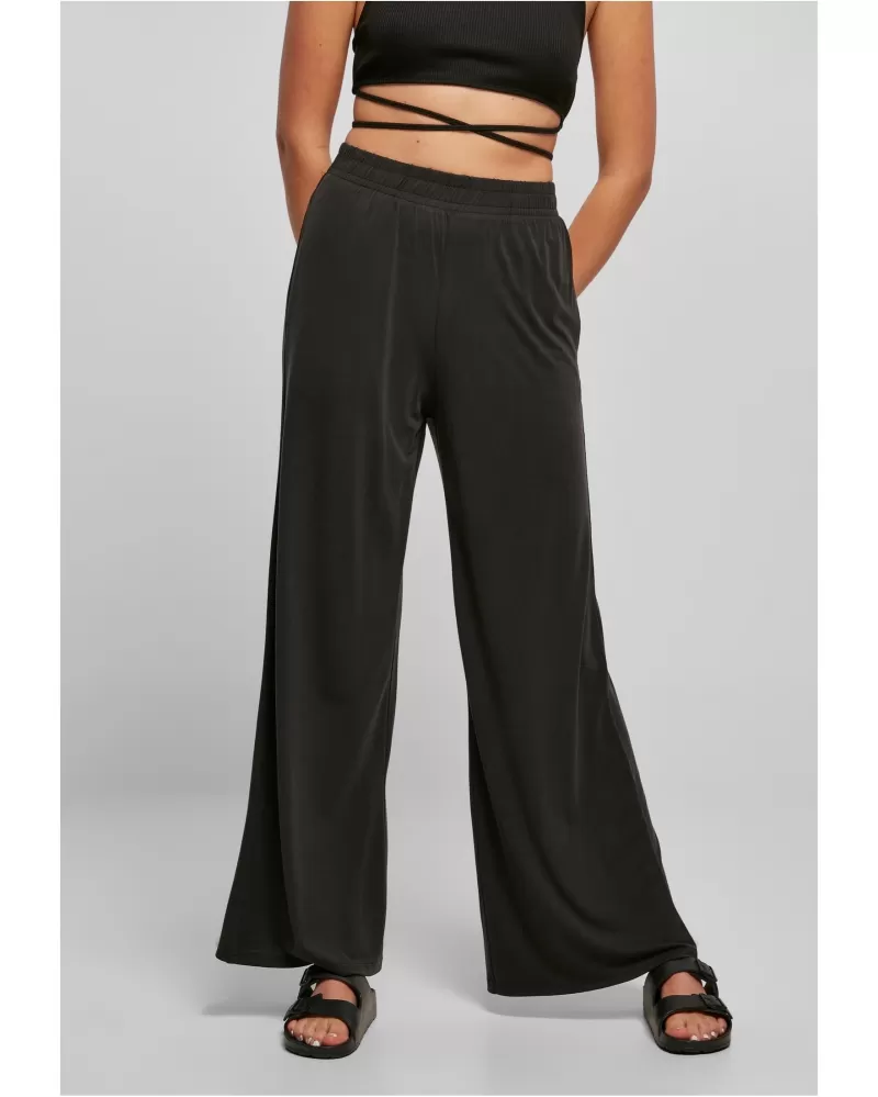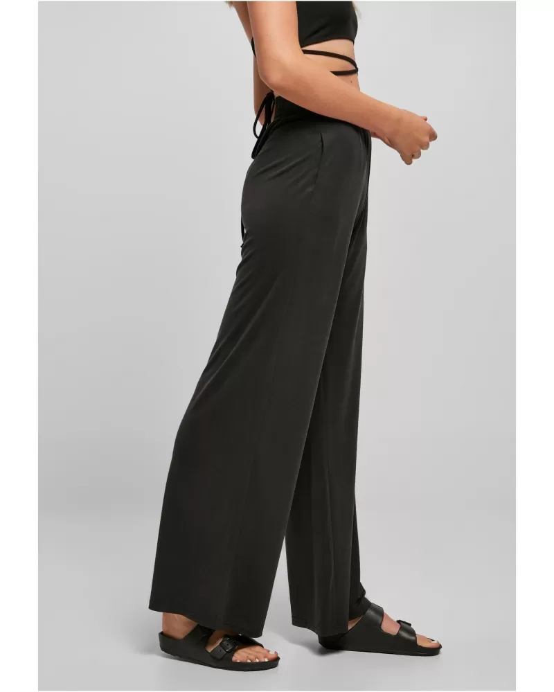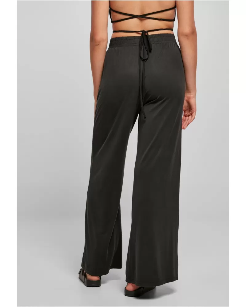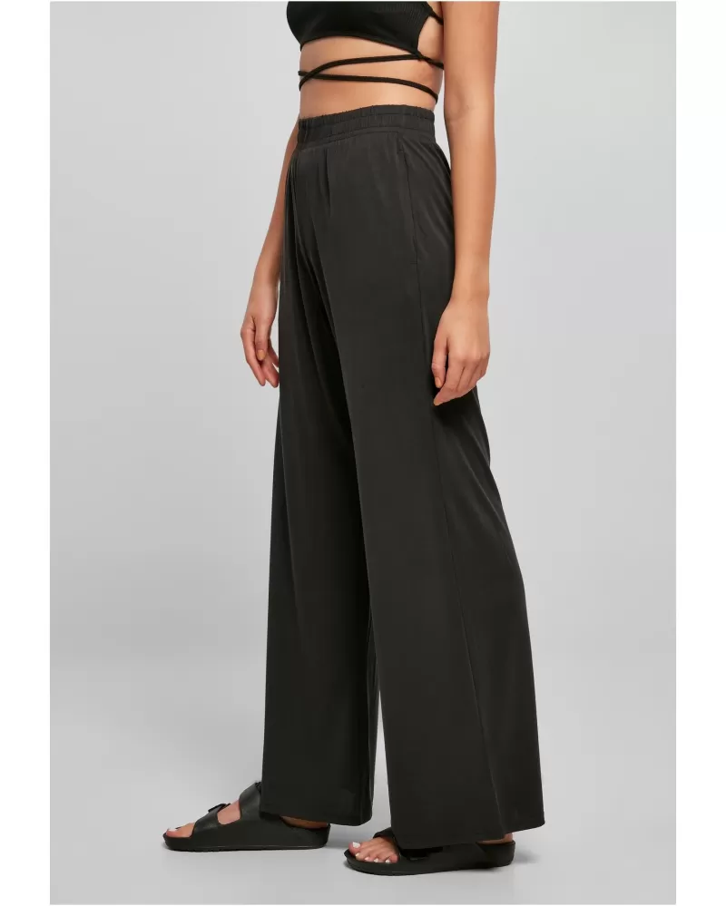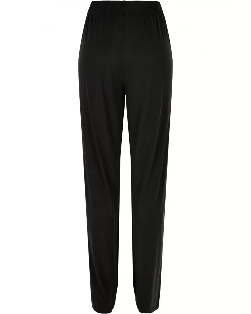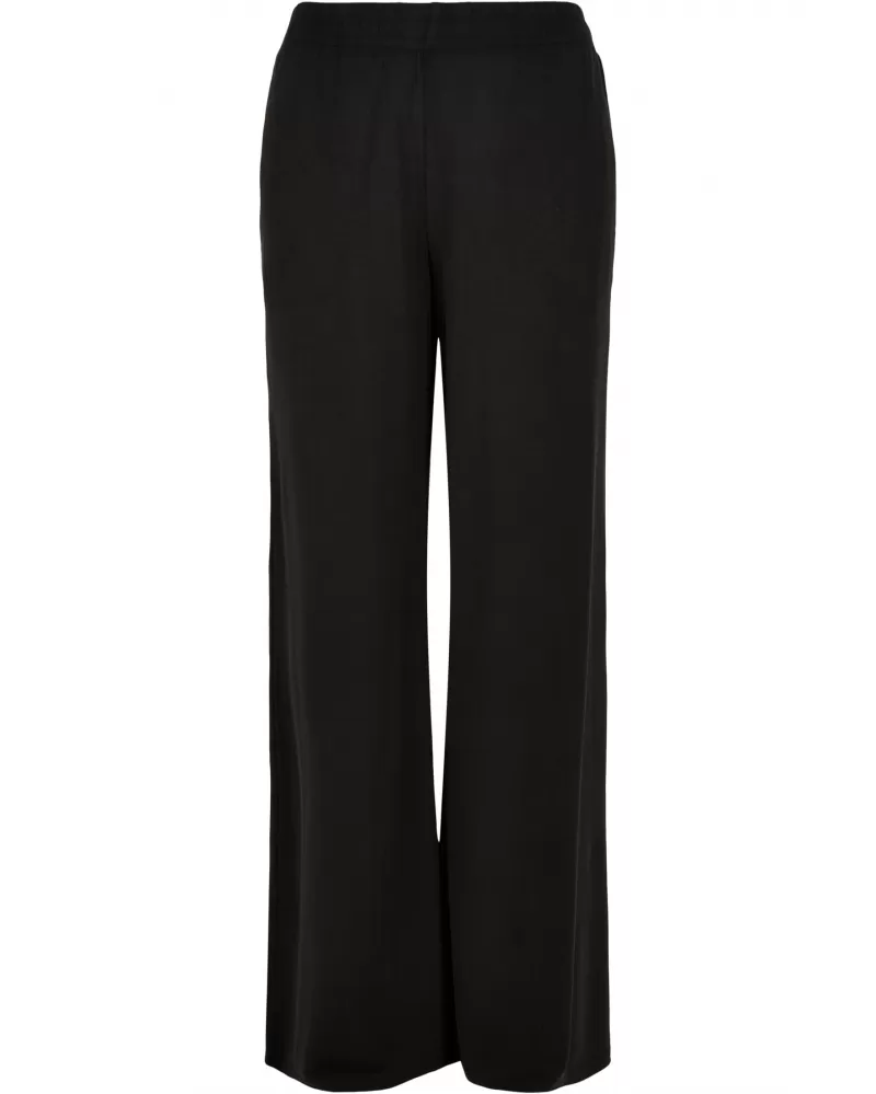 Díky širokým rovným nohavicím a splývavému tvaru, který je zdůrazněn vysokým pasem, se tyto dámské kalhoty prezentují noblesně a nadčasově. Pro dokonalé pohodlí při nošení je pas široký a elastický. Navíc jej lze dále upravit pomocí vnitřních stahovacích šňůrek. Dámské kalhoty jsou volného střihu vyrobené z hladkého modalového žerzeje.
