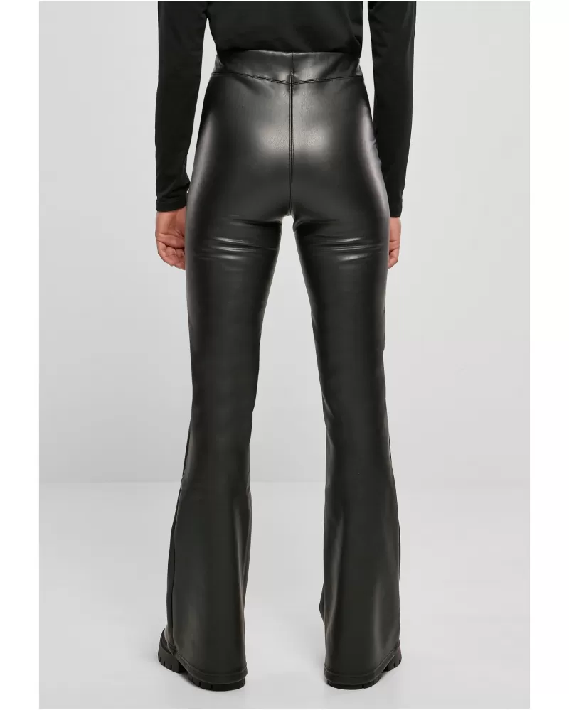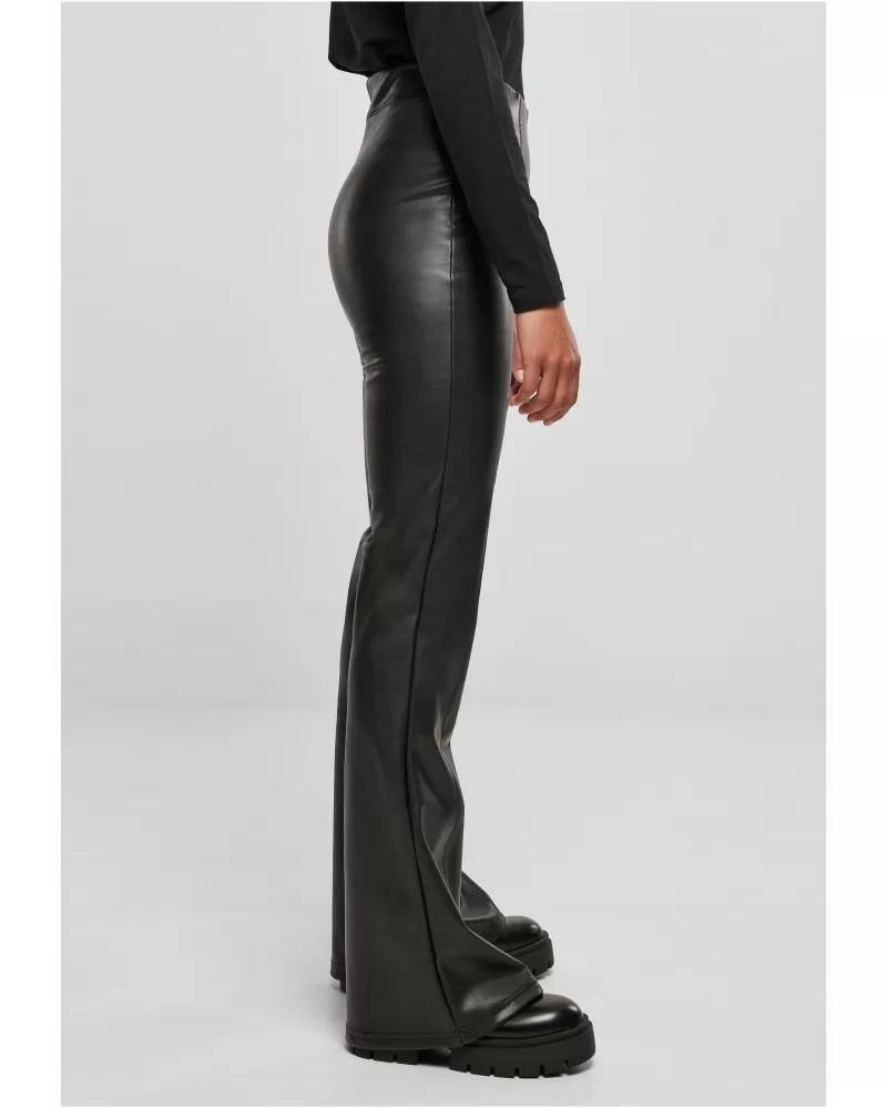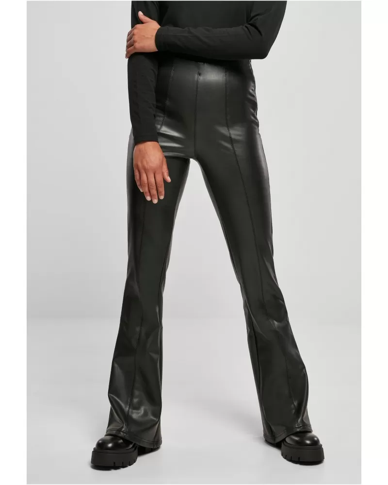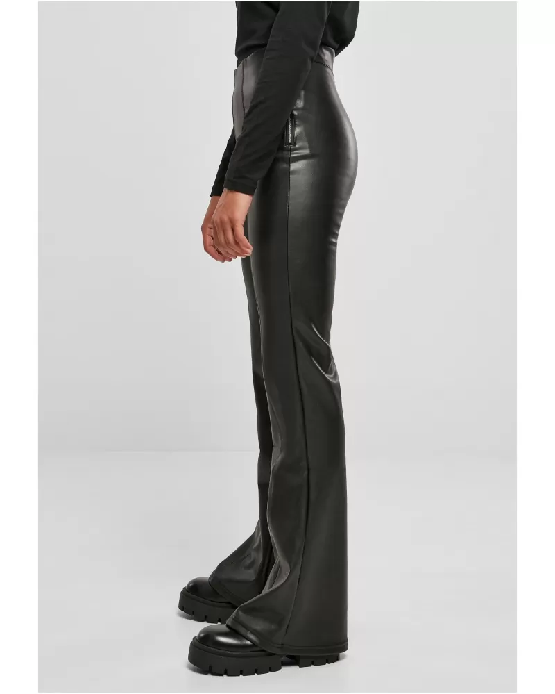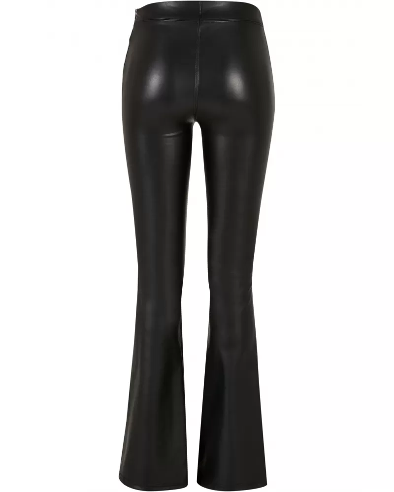 Slinkové dámské kalhoty z umělé kůže vykouzlí dokonalou postavu. Rozšířené nohy vytvářejí úspěšný stylový akcent. Kalhoty sedí vysoko v pase a nabízejí kovový zip na bočním švu. Jsou vyrobeny z pevného polyesteru a elastanu.