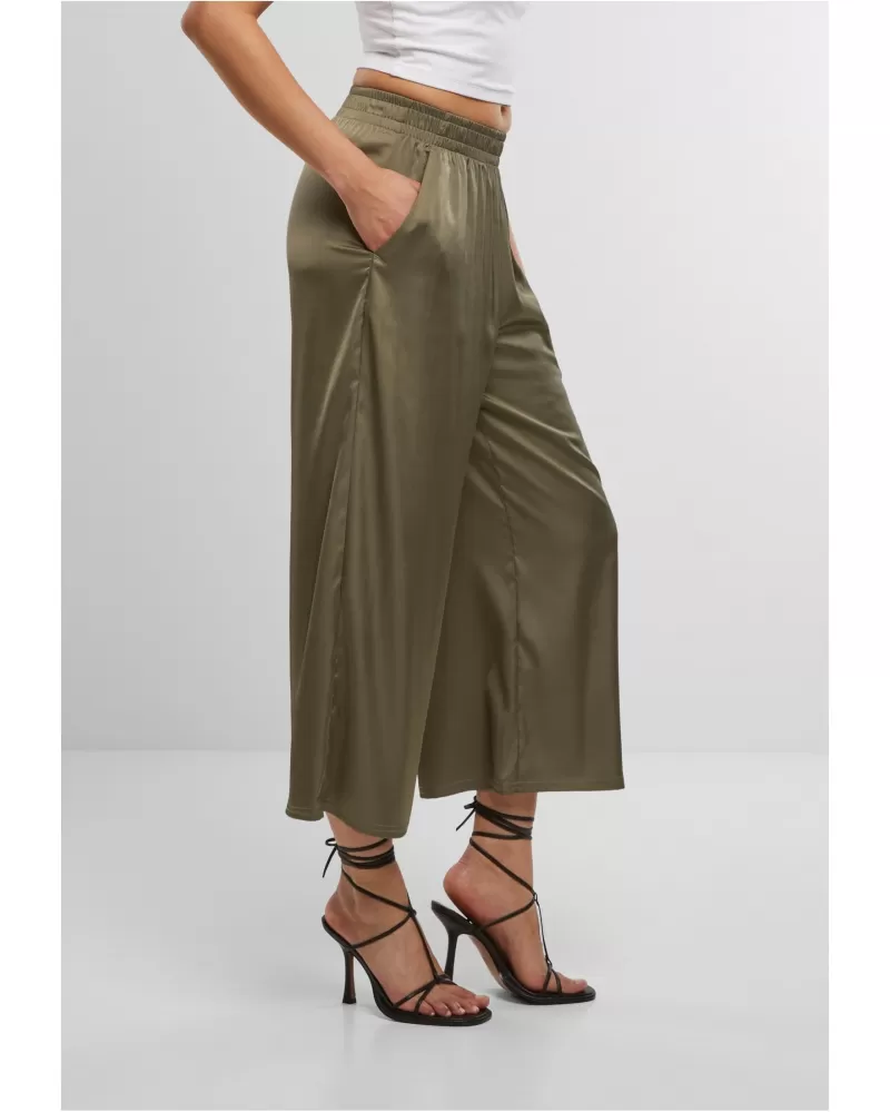 Elegantní a pohodlné široké kalhoty ve stylu „wide-leg culotte“, které spojují sofistikovaný vzhled se snadným komfortem. Lesklý saténový materiál dodává outfitu nádech luxusu, zatímco volný střih poskytuje vzdušnost a svobodu pohybu. Ideální kousek pro dny, kdy chcete vypadat stylově, ale cítit se pohodlně.