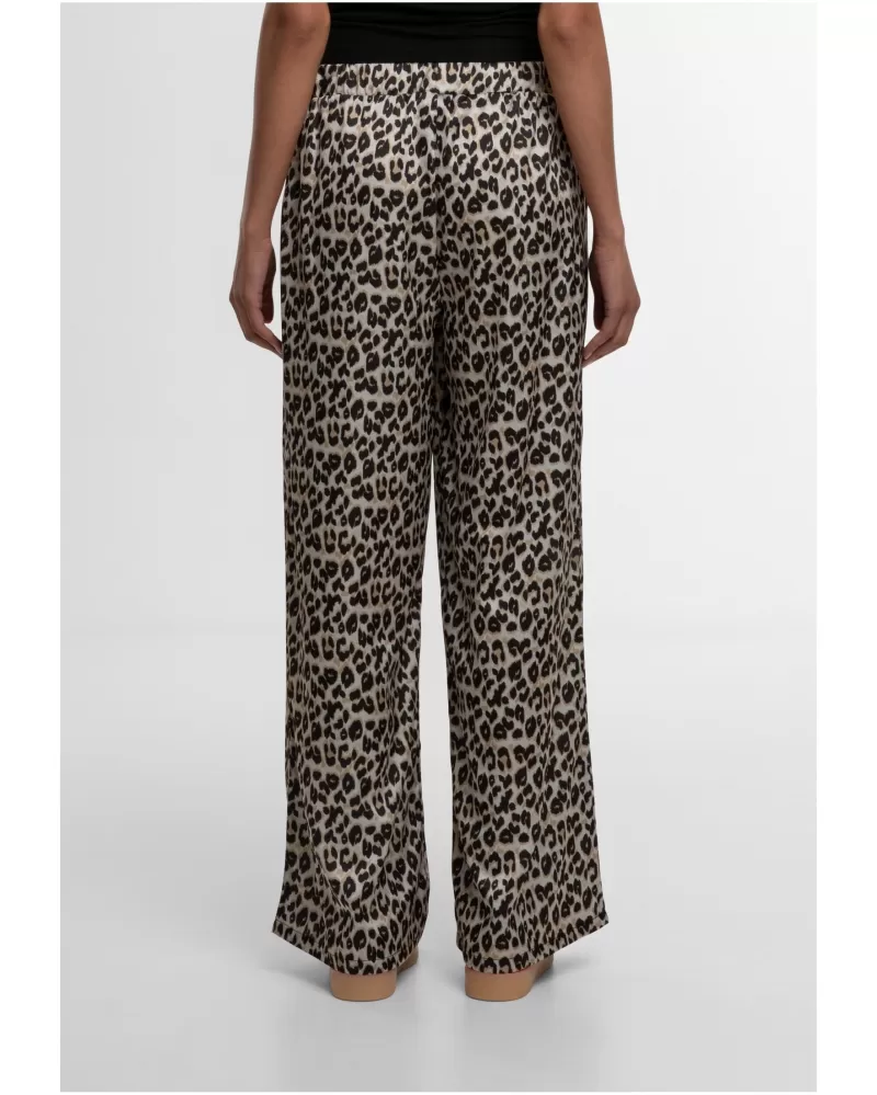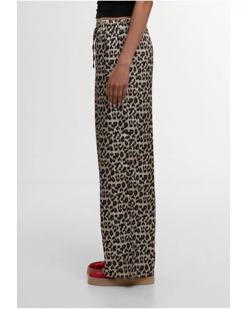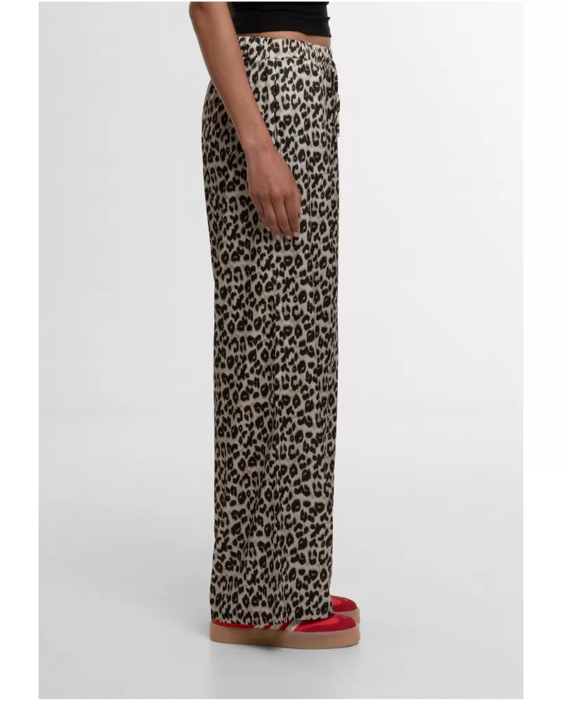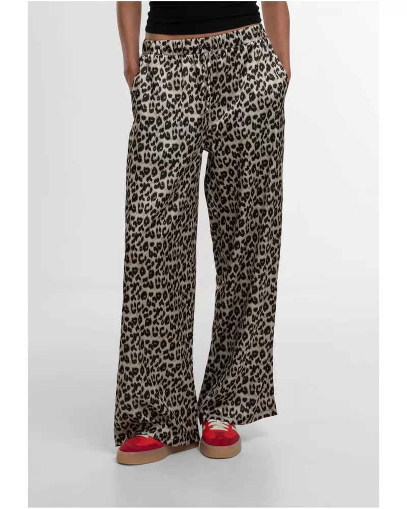 Dámské kalhoty URBAN CLASSICS  jsou pohodlné a moderní volnočasové kalhoty, ideální pro každodenní nošení i cestování. Vysoký elastický pas se přizpůsobí postavě, zatímco volný rovný střih s jemně rozšířenými nohavicemi nabízí maximální komfort. Vyrobeny ze 100 % polyesteru  materiál je vzdušný, příjemný na dotek a skvěle drží tvar. Boční kapsy přidávají praktičnost, tygrovaný vzor  pak podtrhuje svěží letní vzhled