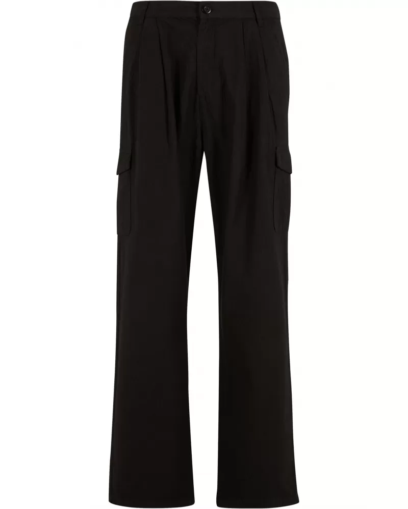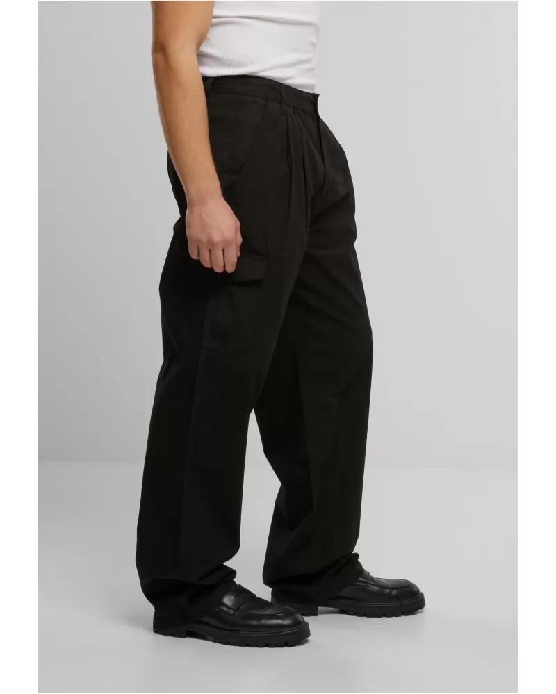 Pánské kalhoty s volným střihem. Kalhoty mají zapínání na knoflík a zip, s mírně zvýrazněnými záhyby na přední straně, což přidává eleganci a strukturu. Vhodné pro formální i neformální příležitosti, ideálně kombinovatelné s košilí nebo jednoduchým tričkem.