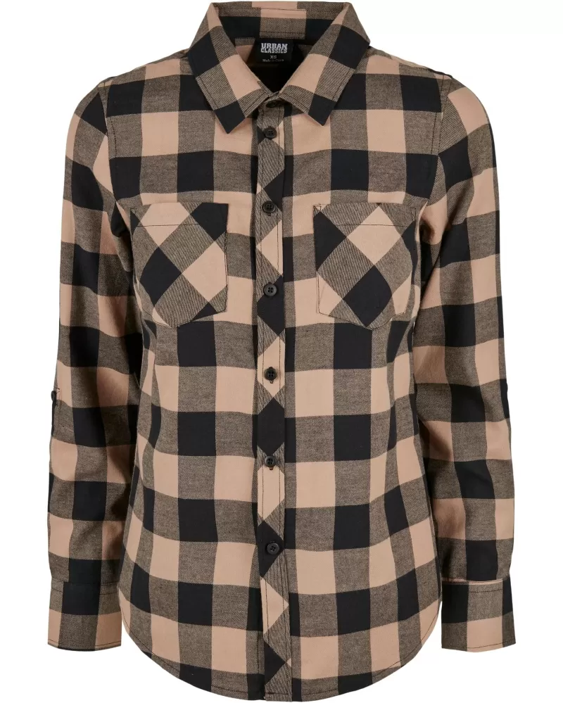 Dámská károvaná flanelová košile  URBAN CLASSICS TB1280 je výrazným kouskem pro kárované vzory a bavlněný flanel. Vyhrnuté rukávy této halenky s mírným pasem zve k navrhování různých vzhledů. Vhodné nošení do zaměstnání,volný čas,příroda. Složení materiálu 100% bavlna.