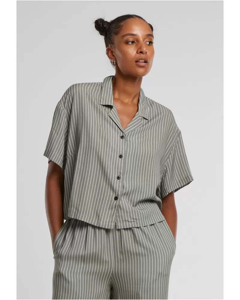Dámská košile URBAN CLASSICS TB4365 PALE OLIVE/WHITE velikost: 4XL