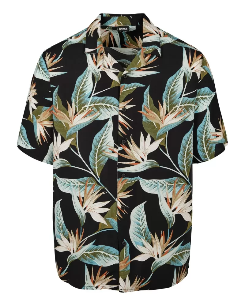 Pánská košile URBAN CLASSICS TB3506 BLACK/BLOSSOM velikost: M