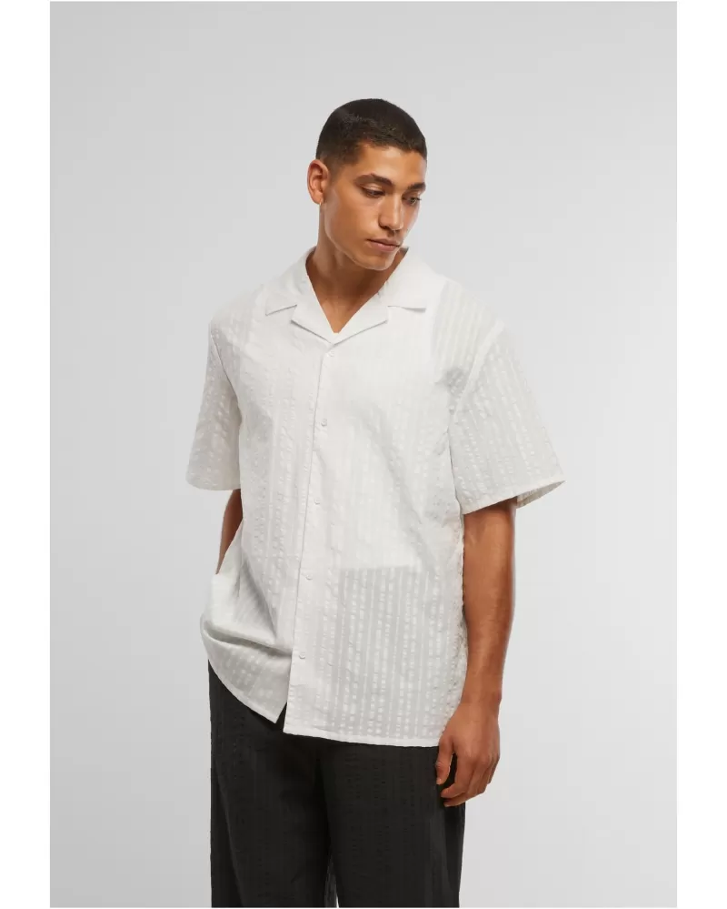 Tato pánská košile URBAN CLASSICS je vyrobena z kvalitního a příjemného materiálu v přiléhavém střihu. Má klasické zapínání a límeček na knoflíky, krátké rukávy s manžetami a nastavitelným zapínáním. Originální design této košile zaujme na první pohled, ať už se chystáte na společenskou akci nebo jen tak do města