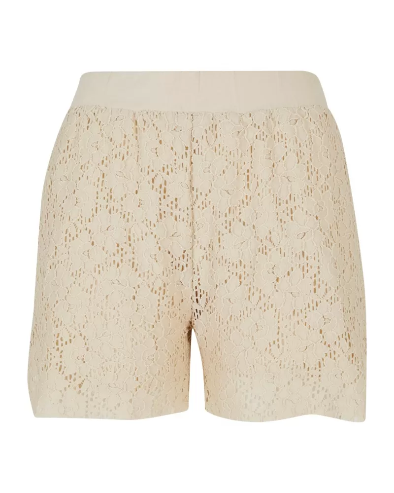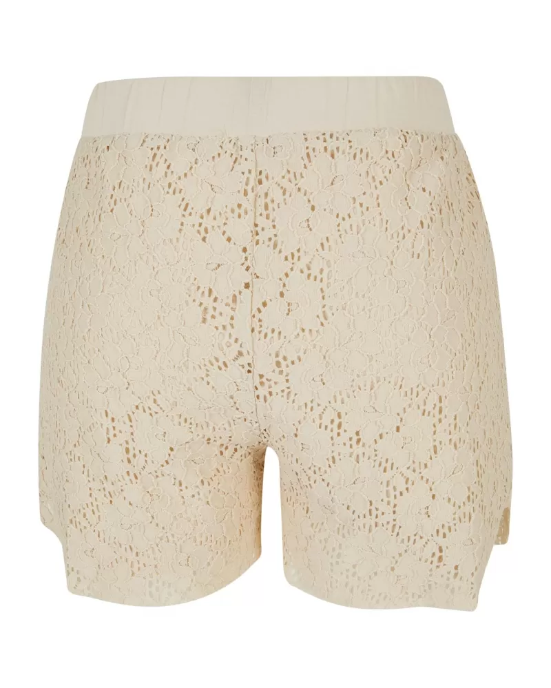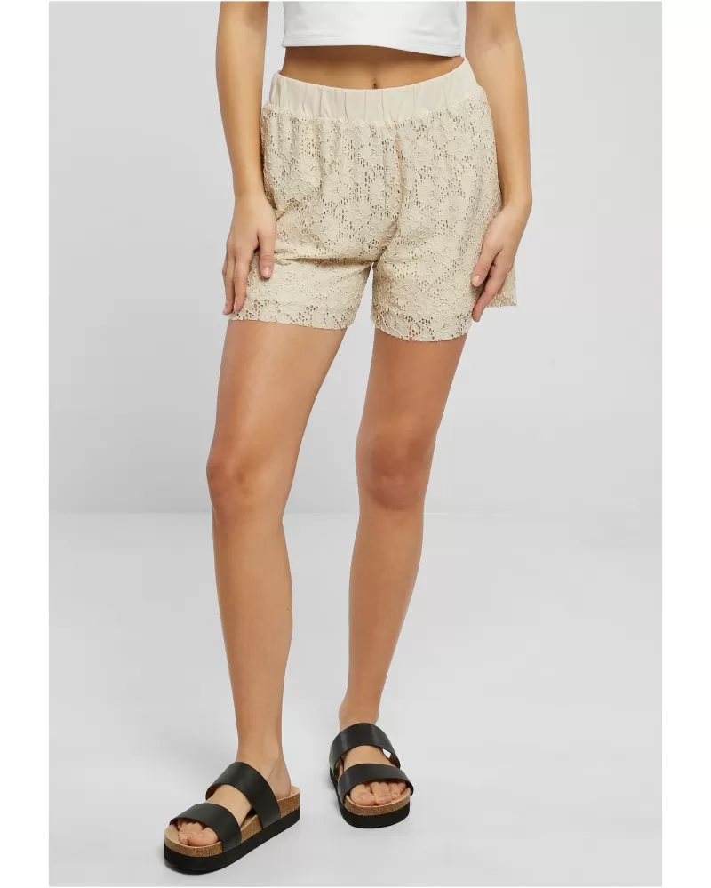 Dámské kraťasy URBAN CLASSICS TB2594  jsou stylovým a pohodlným kouskem na léto, který zaujme svým jemně romantickým vzhledem. Kraťasy mají dvouvrstvý design – horní vrstvu tvoří elegantní krajka, spodní vrstva je z jemného bavlněného úpletu pro maximální pohodlí. Elastický pas se šňůrkou zajistí, že skvěle padnou a neomezují v pohybu.