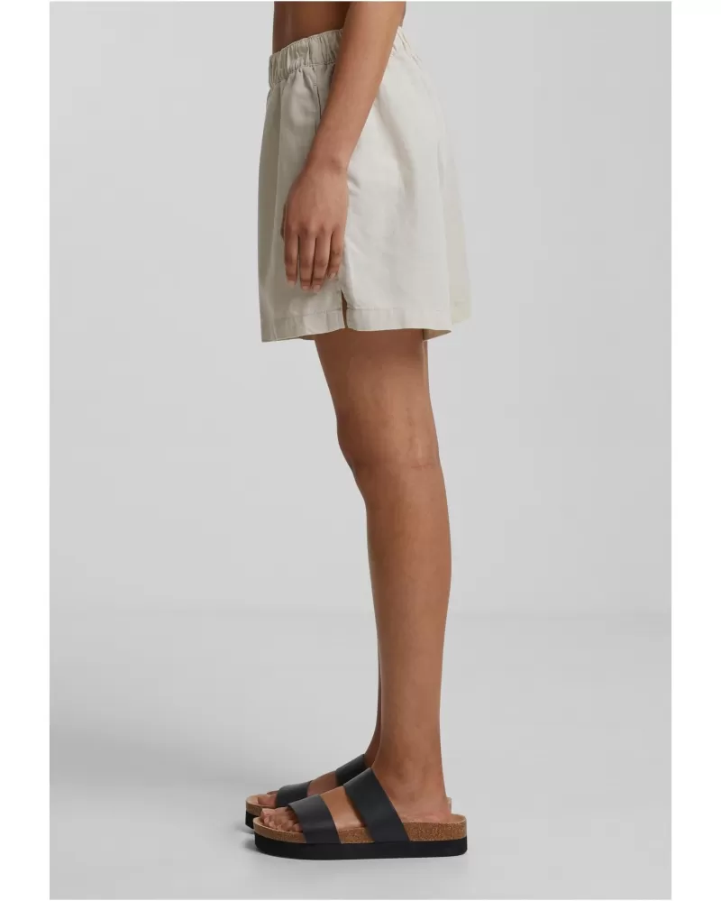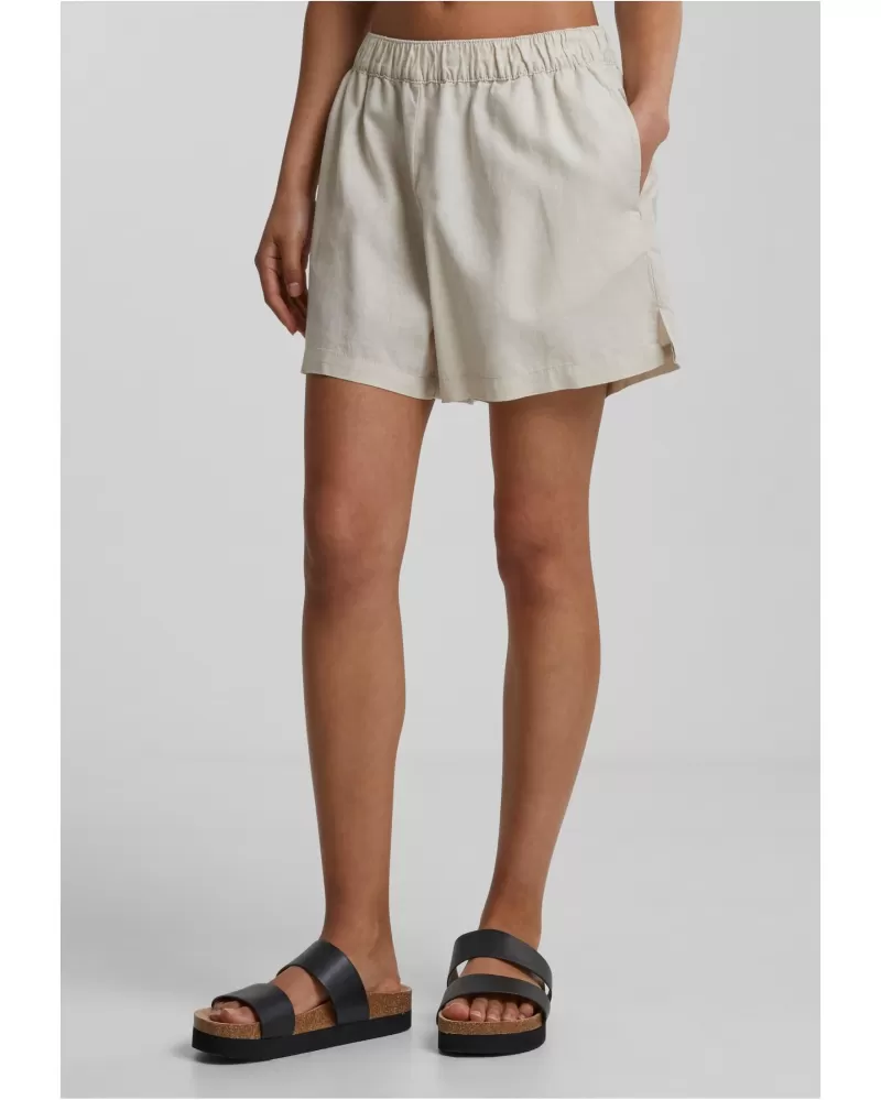 Dámské kraťasy URBAN CLASSICS jsou pohodlné, stylové a ideální na letní dny. Jsou nad kolena, s volným střihem z příjemně chladivé směsi 55 % lnu a 45 % bavlny (180 g/m²). Nabízejí vysoký pas s elastickým páskem, praktické boční kapsy a minimalistický design, který se skvěle hodí na výlety do města i přírody.