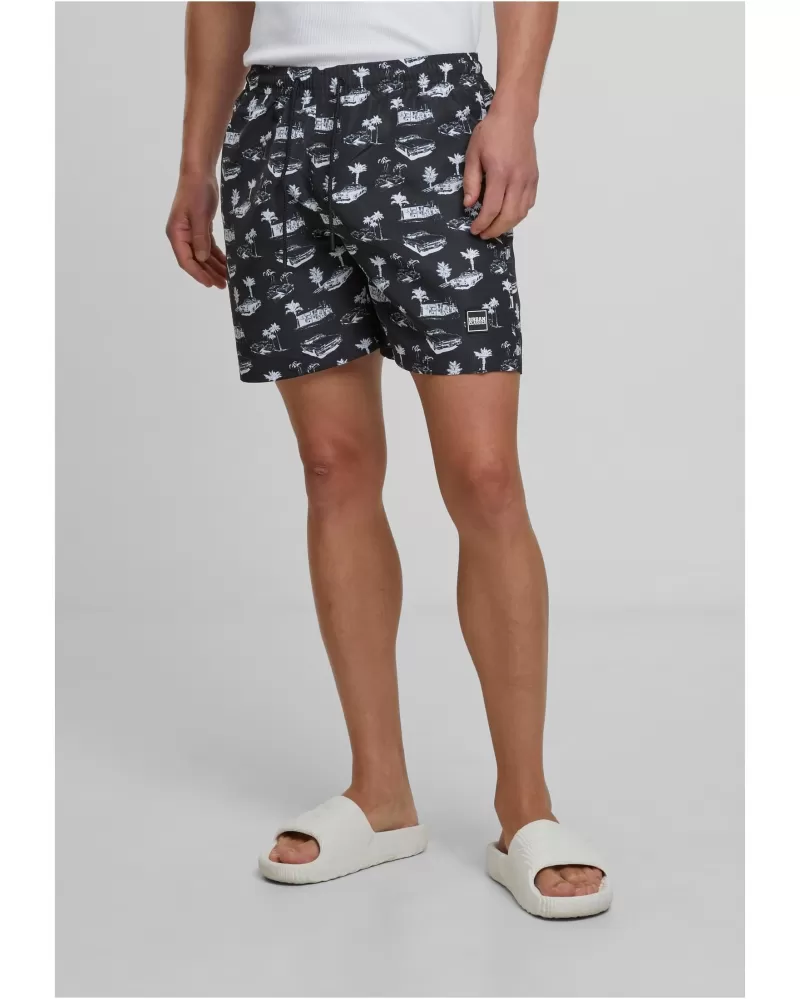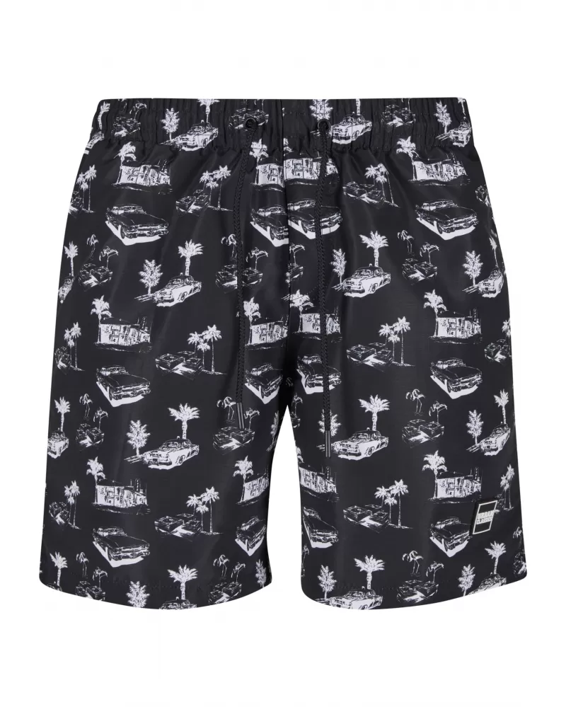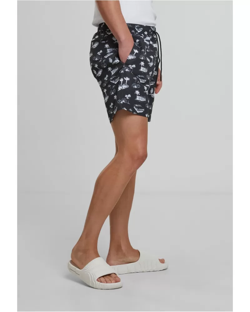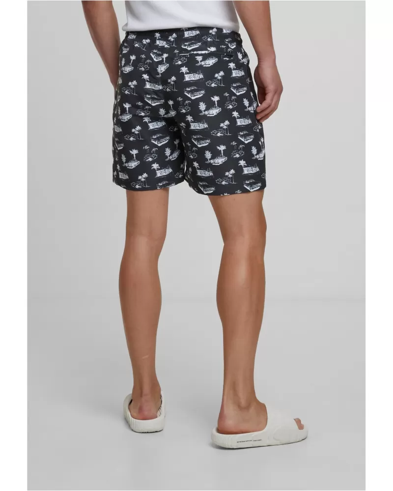 Pánské koupací šortky URBAN CLASSICS TB2679 BLACK/WHITE velikost: 4XL