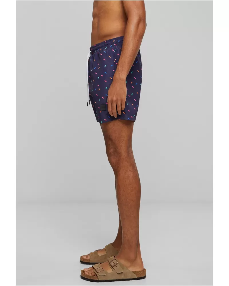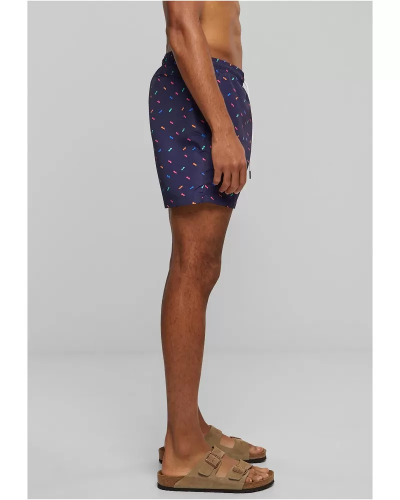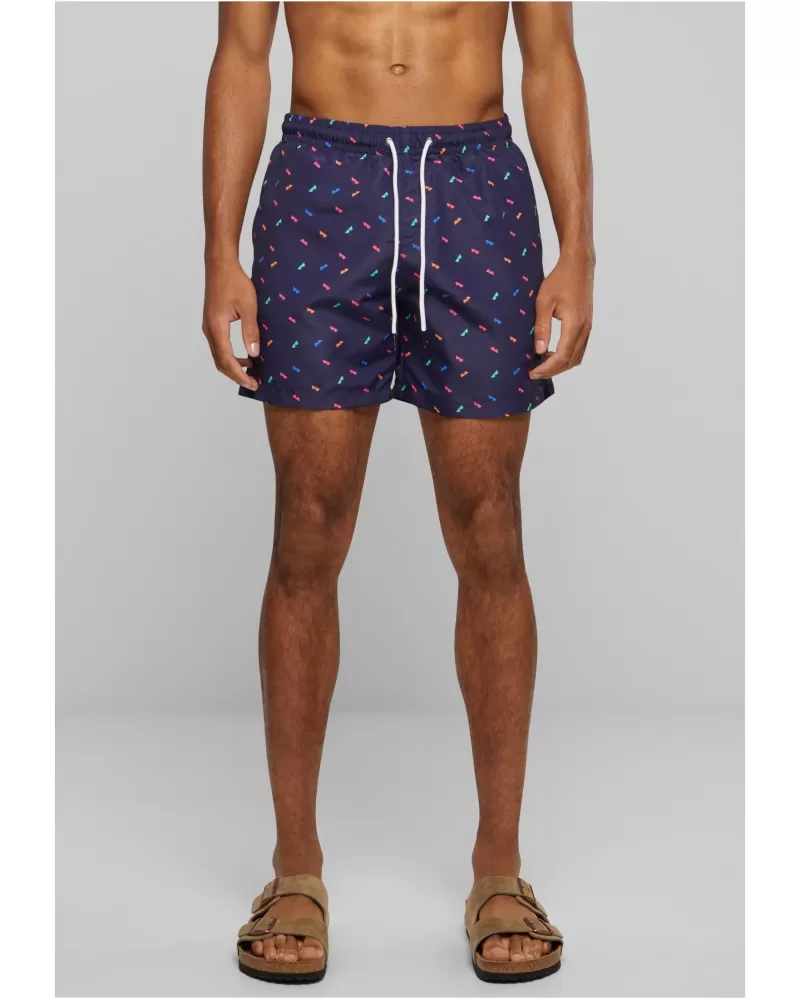 Pánské kraťasy URBAN CLASSICS TB2679, stěmito vzorovanými plavkovými šortkami získáte svůj zasloužený letní pocit. S jejich barevnými potisky a svěžími, zářivými tóny vám  dodají dobrou náladu, ať už na dovolené nebo ve vašem volném čase.. Široký elastický pas se stahovací šňůrkou slibuje nejen perfektní padnutí, ale také maximální pohodlí. Tyto plavky jsou dostupné v široké škále barev. Na zadní straně plavek se nachází kapsa. Složení: vrchní materiál 100% polyester, podšívka 100% polyester, síťovina, díky čemuž jsou odolným a snadno udržovatelným oděvem pro všechny vodní radovánky.