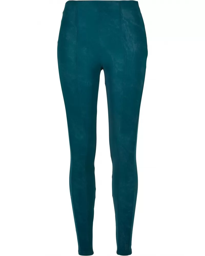 Vzrušující dámské kalhoty mají speciální vzhled a speciální materiál. Umělá syntetická kůže se svým sepraným vzhledem upoutá pozornost. Stylové dámské kalhoty jsou elastické a přiléhající. Přilnou k tělu podobně jako legíny a vysoký elastický pas zajišťuje dokonalé pohodlí při nošení. Integrovaný kovový zip v tmavě stříbrné barvě na bočním švu je pěkným a praktickým designovým prvkem. Módní kalhoty upoutají pozornost – zaručeno!
