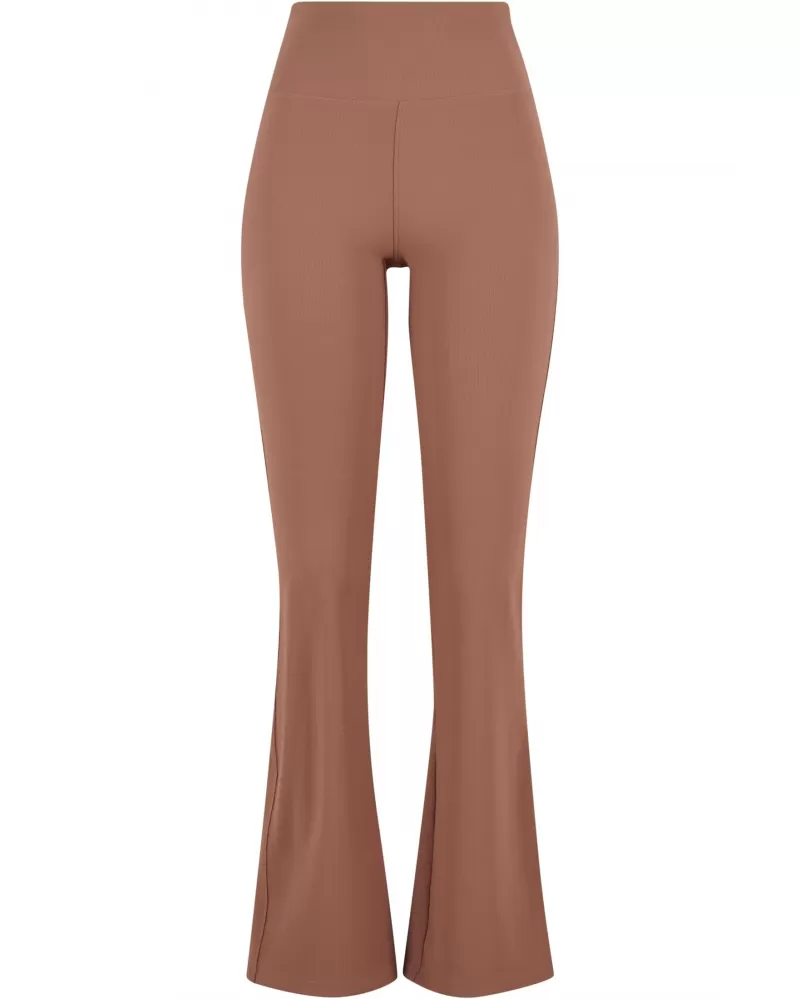 Tyto dámské rozšířené legíny jsou navrženy pro styl i pohodlí, což z nich činí skvělou volbu pro jógu nebo neformální výlety. Díky vysokému pasu a volnému střihu nabízejí pohodlí bez kompromisů v pohybu. Dlouhá délka dodává eleganci, zatímco rozšířený střih vytváří lichotivou siluetu. Tyto legíny jsou vyrobeny z měkké směsi materiálů, což jim zaručuje flexibilitu a odolnost. Žebrovaná textura dodává jemný detail, který umocňuje jejich celkový vzhled, a dělá z nich všestranný doplněk do každého šatníku.