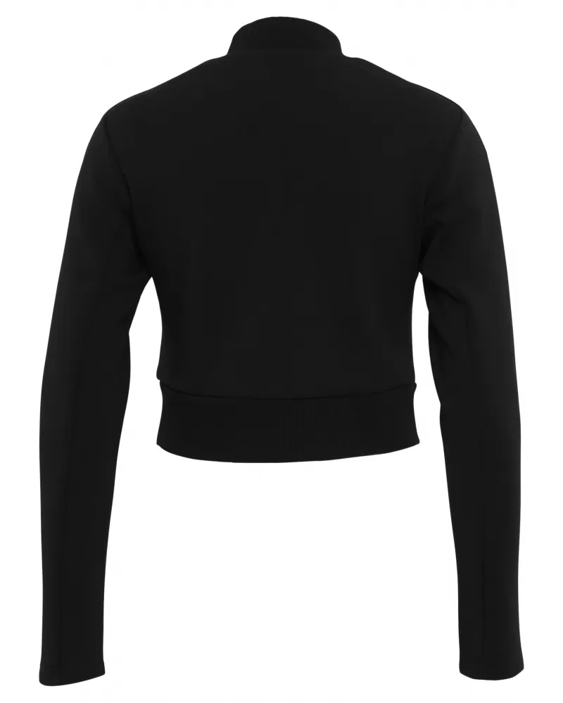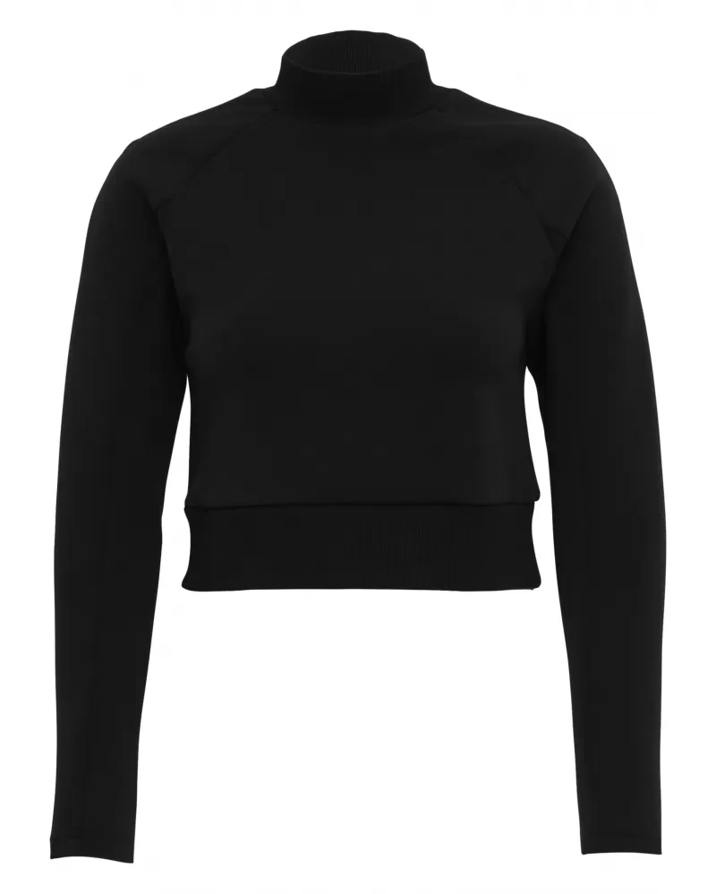 Moderní a elegantní dámský svetr pro fashionisty. Střih je krátký, ale nabízí velkou a dominantní šířku s velkou volností pohybu kolem ramen díky raglánovému tvaru. Stojáček je vyroben z žebrované tkaniny. Široký, zdůrazněný lem dodává mikině styl, zatímco interlockový materiál poskytuje jistý postoj. Střih je pravidelný. Sportovní a elegantní zugleich.