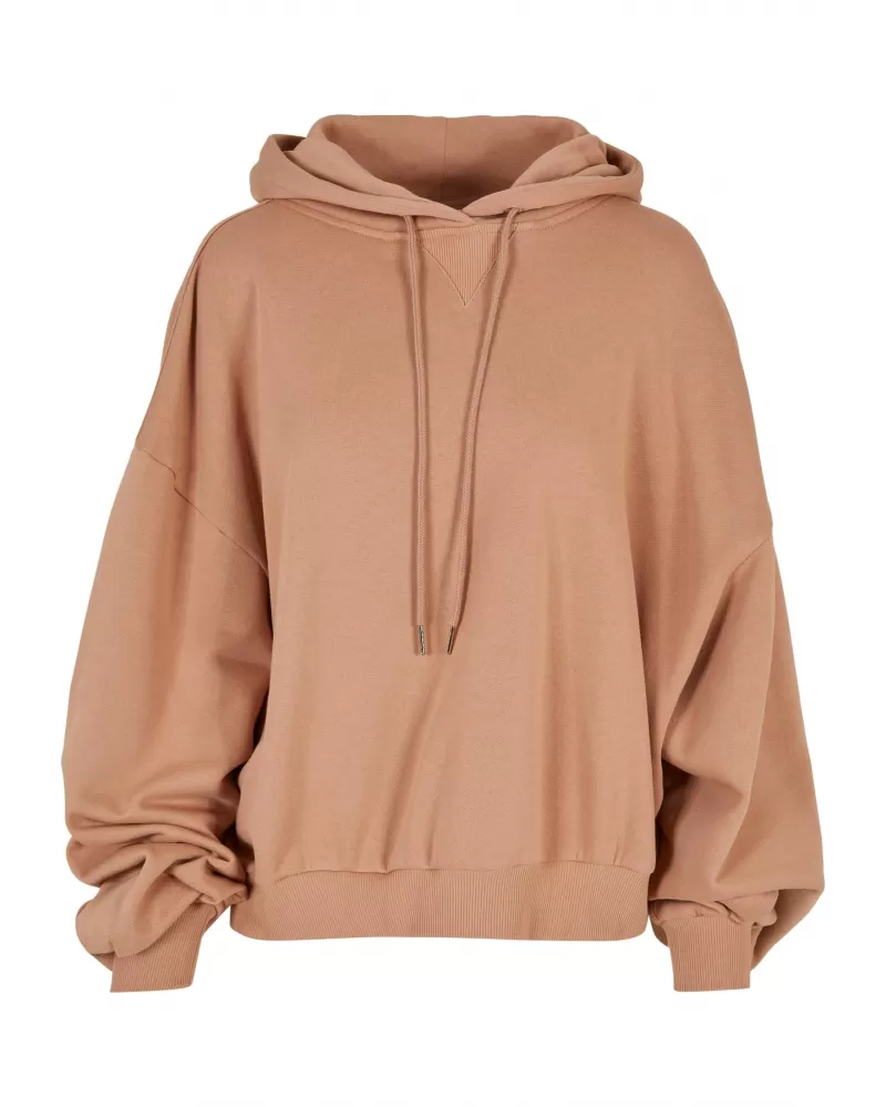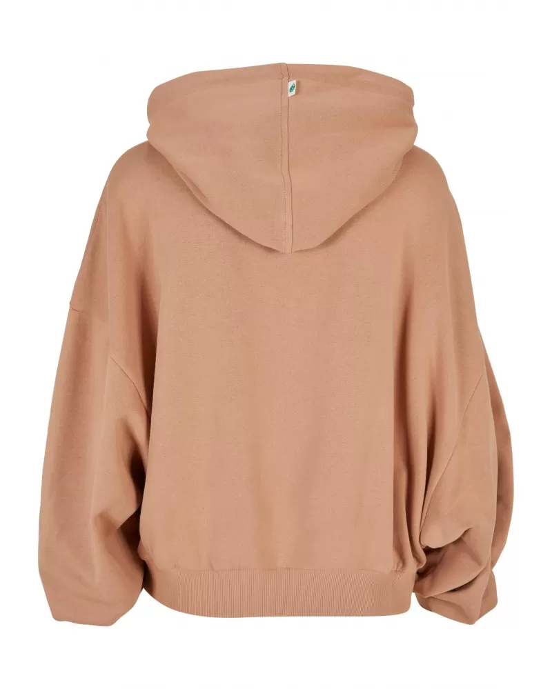 Tato extra široká dámská mikina s dlouhými, širokými rukávy, které bohatě překrývají ramena, je super pohodlná a stylová zároveň. Útulná kapuce s tónovanými šňůrkami a širokými žebrovanými manžetami na rukávech a lemu poskytují bokový vzhled. Trendy dámská mikina je vyrobena z nejjemnějšího organického froté.