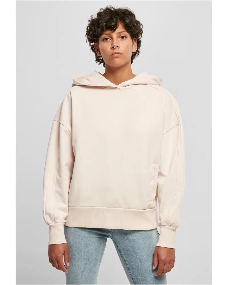 Tato svěží dámská mikina s kapucí představuje trendy styl, který se skládá z lehce běleného prádla a sofistikovaných detailů. Vsadky vedou přes ramena a vnější rukávy i centrálně přes kapuci. Mikina má dvě praktické boční kapsy a široké žebrované manžety na rukávech a lemu. Pohodlný oversize střih se spadlými rameny a těžká a hladká froté bavlna poskytují optimální pohodlí při nošení.