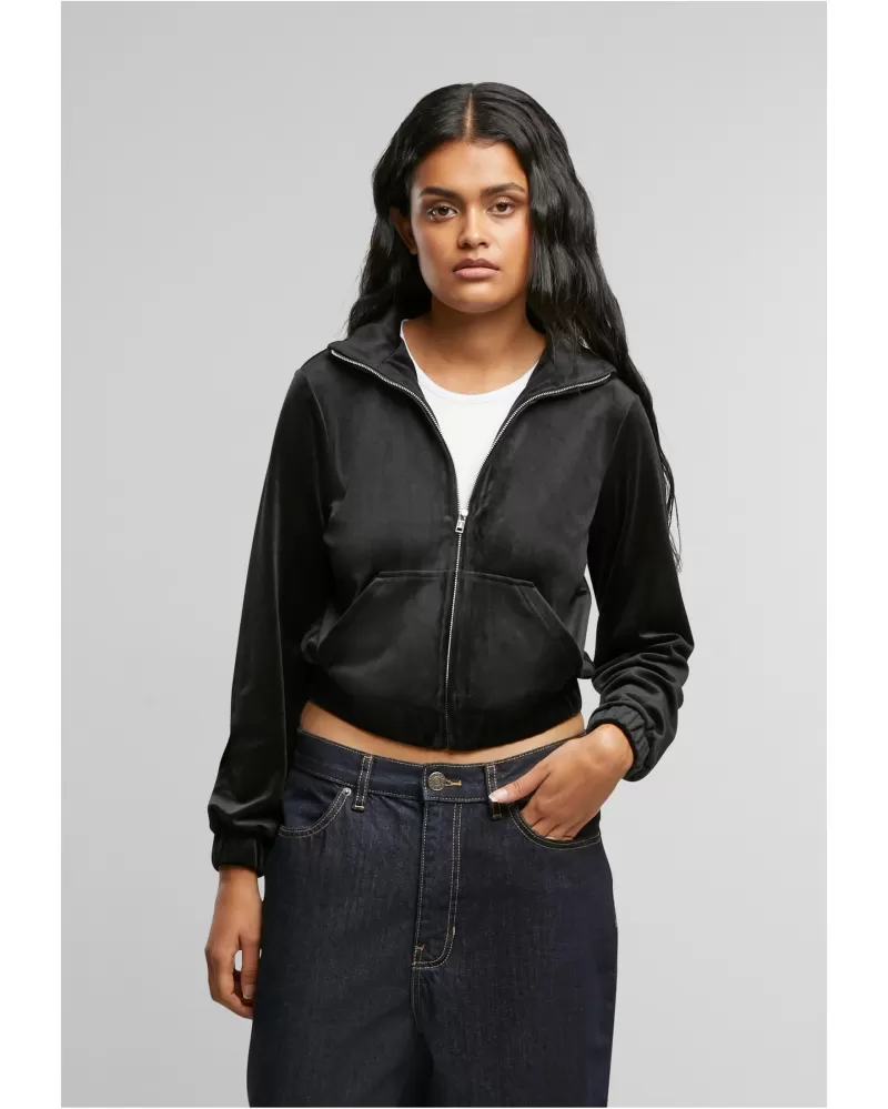 Dámská mikina URBAN CLASSICS vhodná na každodenní nošení. Je vyrobena z měkkého materiálu, který je příjemný na dotek, což zajišťuje komfort a pohodlí. Celorozepínací zip a kratší střih zaručují spolehlivost při každodenním nošení. Spodní lem i rukávy jsou zakončené pružnými úplety. Tato mikina se hodí k džínám i k teplákům.
