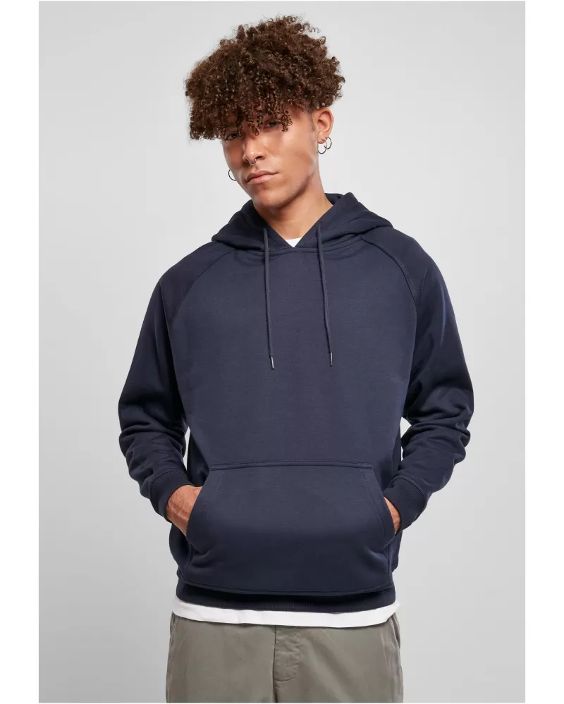 Jednoduchá pánská mikina s kapucí z těžké a příjemné tkaniny, která boduje raglanovým střihem beze švů na ramenou. Tato pánská mikina se může pochlubit klasickými prvky, jako je kapuce se stahovací šňůrkou, klokaní kapsa a elastické, žebrované manžety a spodní lem. Mikina má pohodlný střih a je vyrobena z bavlny a polyesteru, zatímco vnitřní strana je podšitá huňatým fleecem.