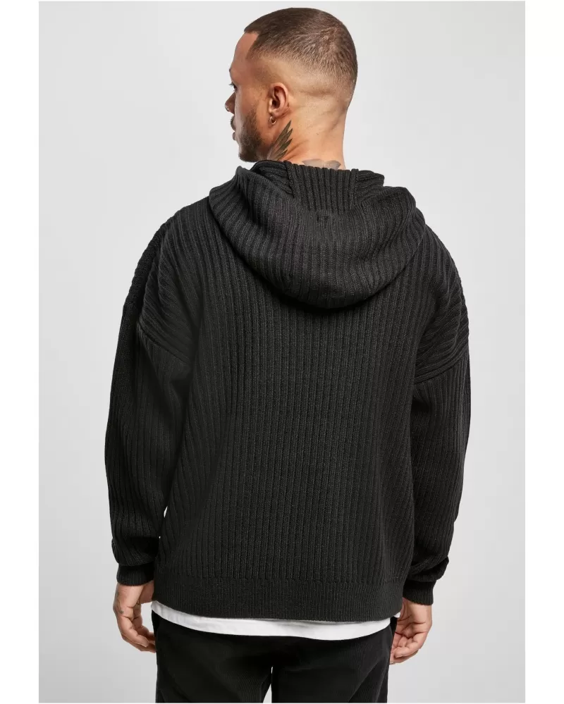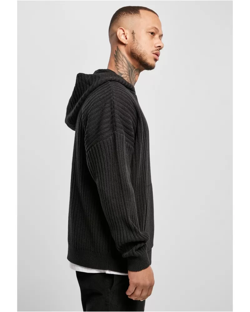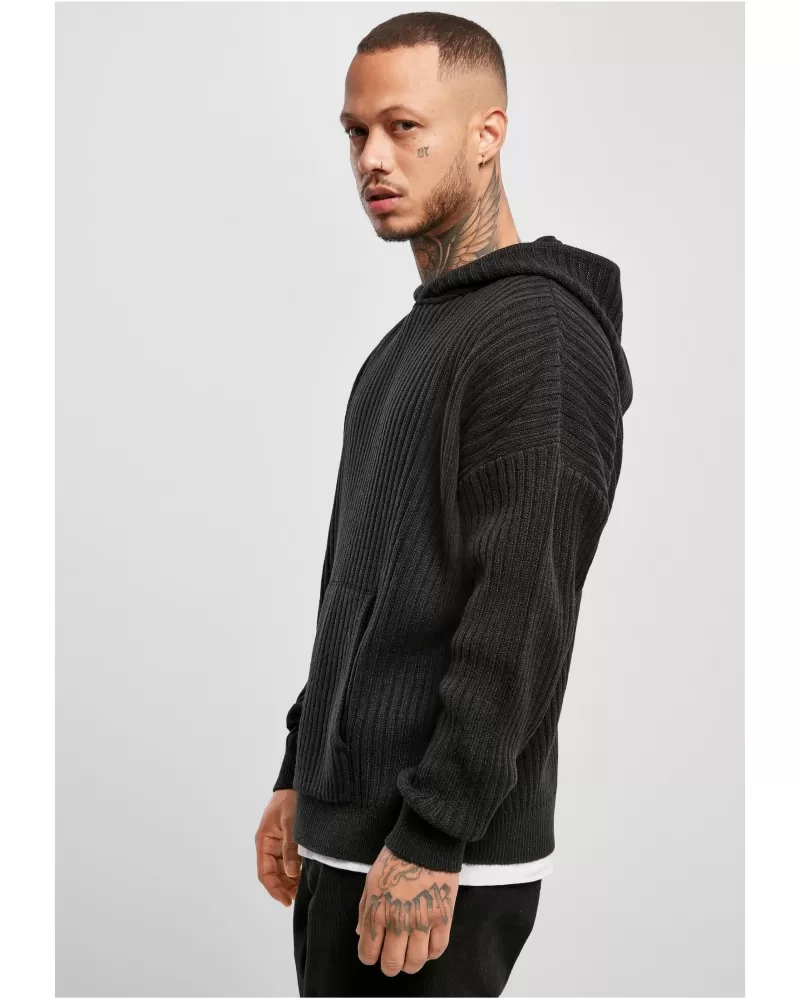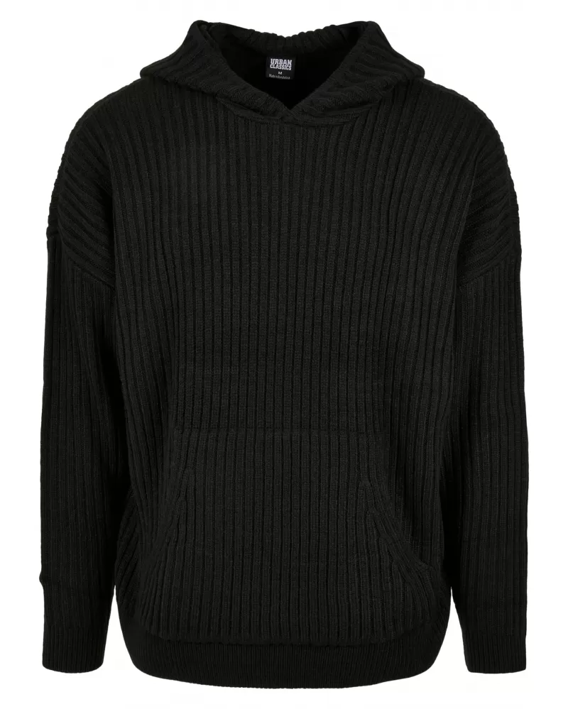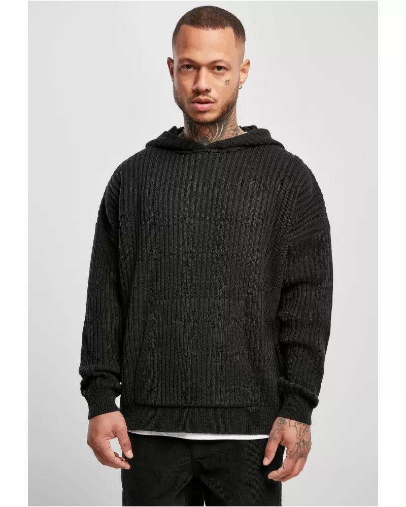 Pánská mikina s kapucí se vzorem širokého žebrovaného úpletu, který nesmí chybět v žádném módním šatníku. Jemný kousek oblečení je vybaven všemi potřebnými kapucemi, jako je velká kapuce, široké žebrované manžety na rukávech a lemu a klokaní kapsa. Akrylový úpletový materiál poskytuje extra dávku ležérnosti a velkorysý volný střih s širokými spadlými rameny se skvěle hodí ke stylu.