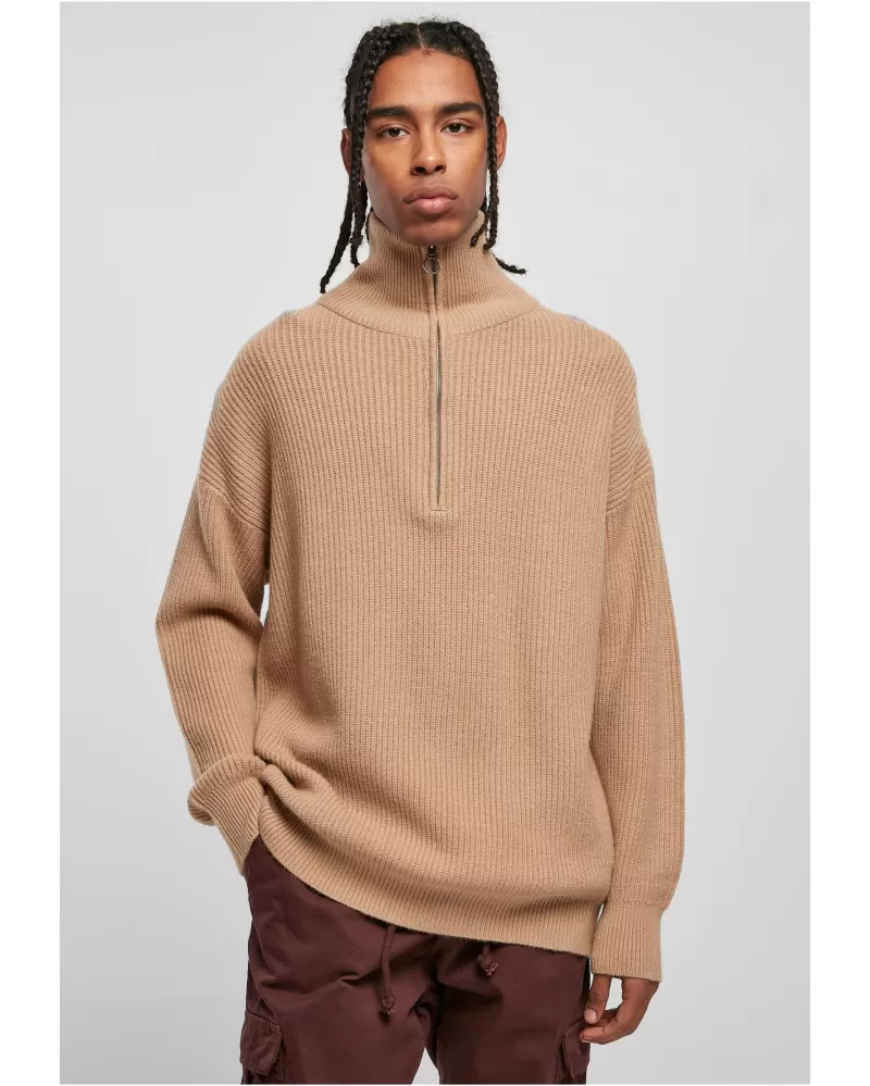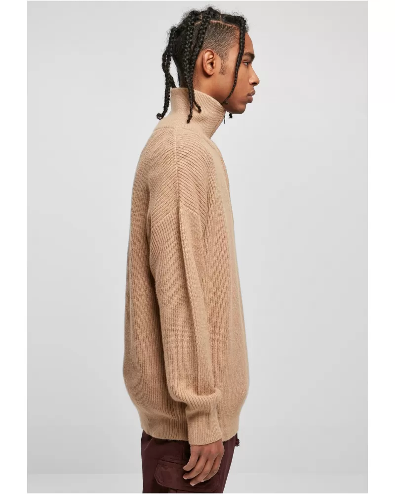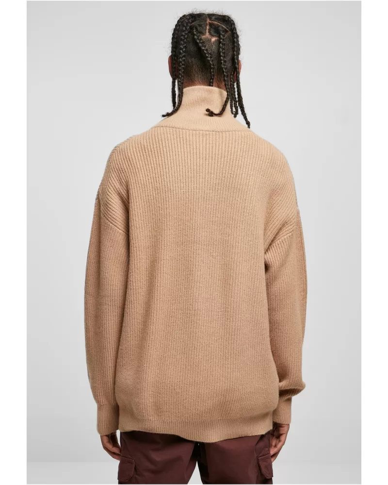 Pánský pletený svetr zaujme vysokým stojáčkem s kovovým zipem a dlouhým předním výstřihem na zip. Vzhled doplňuje velký žebrovaný úplet z... Celý popis