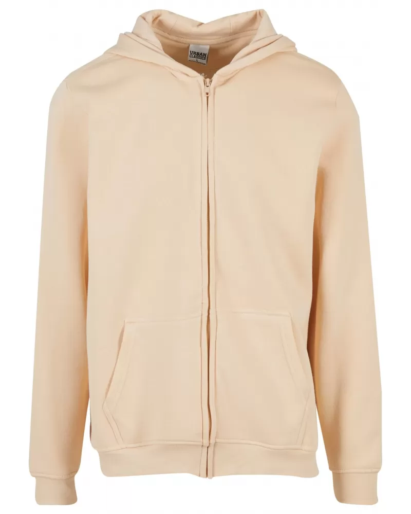 Pánská mikina URBAN CLASSICS s kapucí je praktická, navržená jako vrstva pro každodenní nošení z bavlny a polyesteru  pohodlným střihem. Má pevnou kapuci s výstřihem a zapínání na zip po celé délce pro snadné oblékání a svlékání, zatímco vsazené dlouhé rukávy a žebrované manžety a lem udržují siluetu úhlednou a nositelnou. Klokaní kapsa nabízí úložný prostor pro praktické drobnosti a ležérní funkci a rovná standardní délka se skvěle hodí k teplákům nebo džínům pro uvolněné oblékání. Díky provedení s rovnými švy a odolným povrchovým úpravám vyvažuje pohodlí a strukturu pro běžné nošení a vrstvení po celou sezónu
