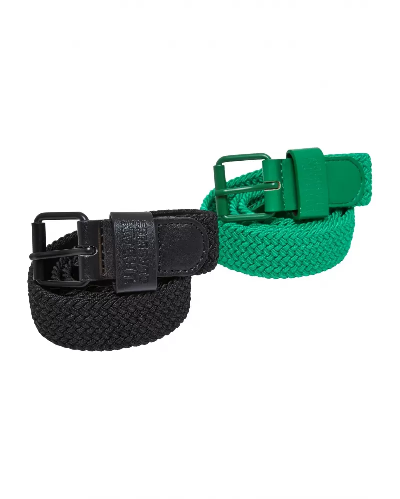 Módní dětské opasky v sadě po dvou jsou elastické a mají barevný pletený vzhled. Poutka na opasek a přezka barevně perfektně ladí a vytvářejí celkově ucelený vzhled.