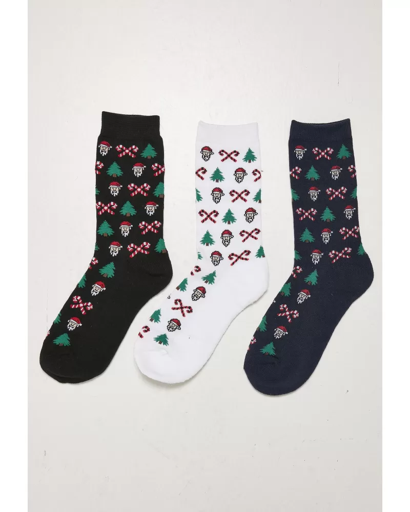 Tři páry veselých vánočních ponožek s celoplošným vánočním potiskem, včetně vánočního stromku, portrétu Santa a bonbónů. Originální ponožky Urban Classics jsou střiženy do výše lýtek a jsou vybaveny pohodlnými, elastickými manžetami. Jsou k dispozici ve čtyřech různých velikostech a jsou vyrobeny z bavlny, polyesteru a spandexu.