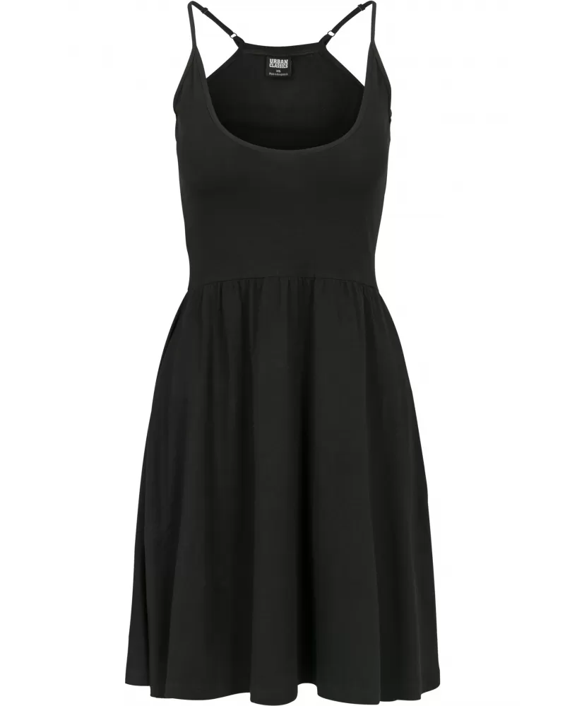 Dámské šaty URBAN CLASSICS TB2610 tvoří skvělou siluetu a udrží vás bez potu i v horkých dnech! Kulatý hluboký výstřih hezky kontrastuje se sportovními ramínky a širokými průramky na zádech. Bavlněné šaty ležérně padají po těle a končí nad koleny. Dokonalé šaty pro vychutnání každého letního dne. Můžete je využít jak na procházky, do města. Složení materiálu 95% bavlna, 5% elastan.