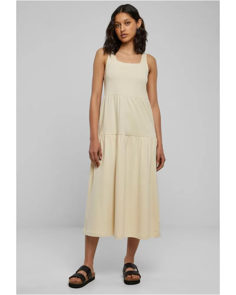 Stylové dámské šaty URBAN CLASSICS v midi délce nesmí chybět ve Vašem šatníku. Vyrobeny jsou z kvalitního a příjemného materiálu. Mají hlubší kulatý výstřih i na zadní části a široké ramínka. Elastický materiál se snadno přizpůsobí Vaší postavě. Tyto šaty budou Vaším oblíbeným kouskem v letních měsících.