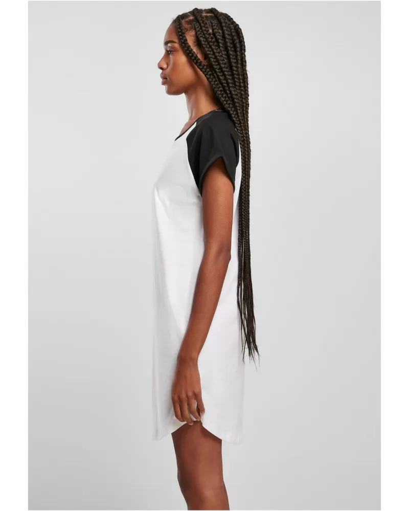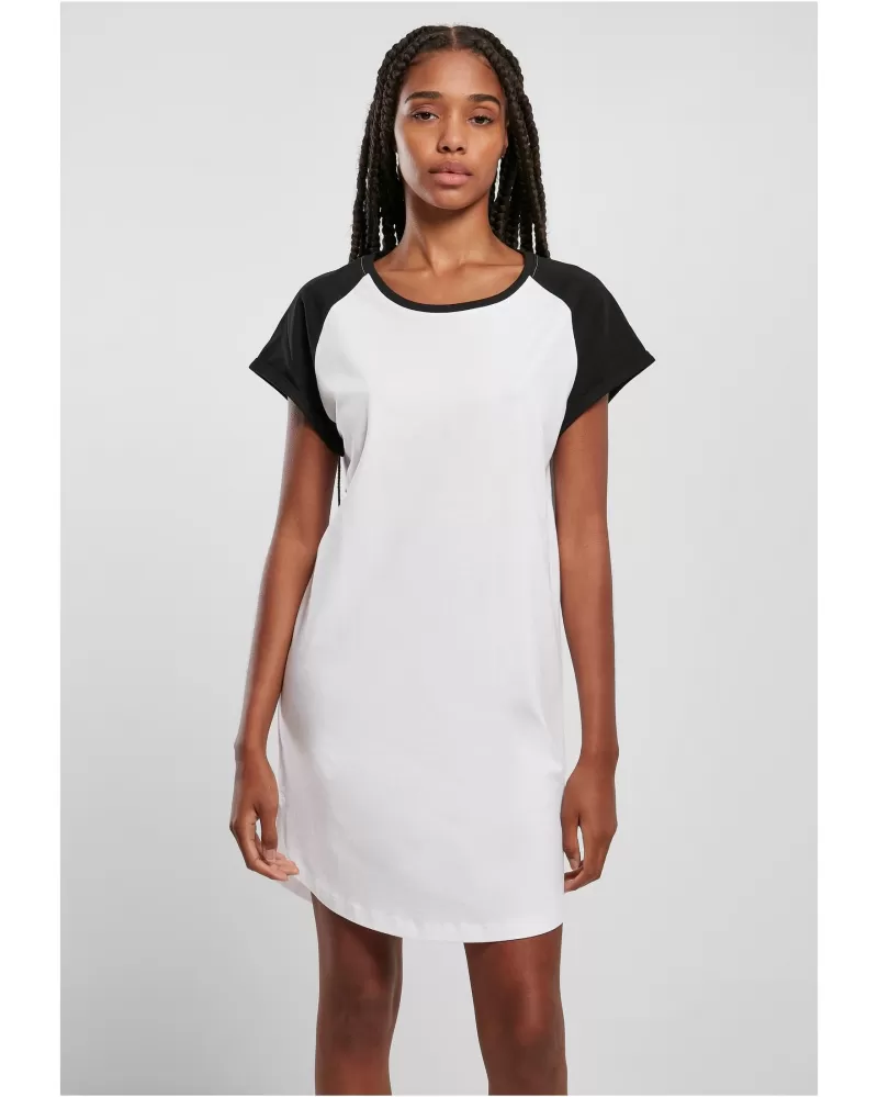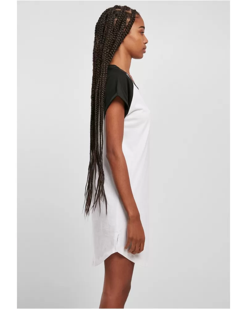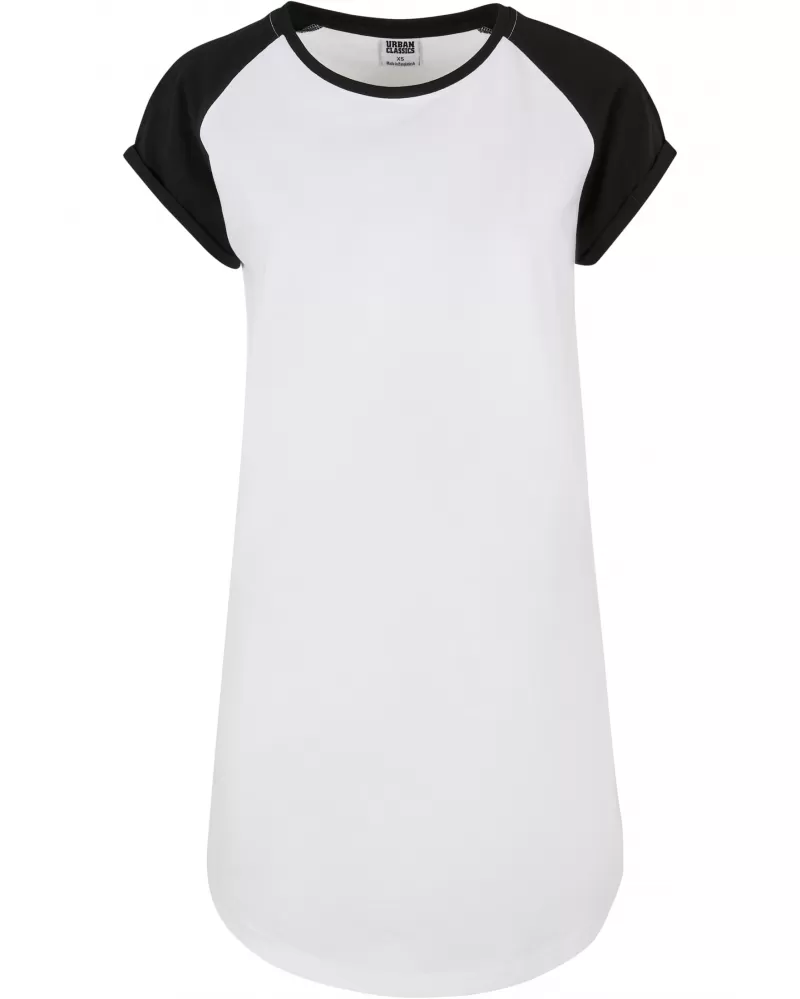Sportovní a ležérní: tyto šaty představují raglánový střih s rameny a rukávy v kontrastní barvě – to znamená bezešvá ramena a stylový vzhled trička. Krátké rukávy jsou mírně vyhrnuté a šikmé, zatímco zaoblený lem a boční rozparky dotvářejí harmonický vzhled těchto minišatů. Má pravidelný střih a je vyrobena z bavlny příjemné na kůži.