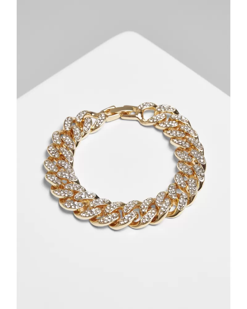 Těžký náramek kombinuje články poddajného řetízku s malými třpytivými kamínky. Zvoleným materiálem je zinek, ale pozlacený pro poskytnutí luxusnějšího pocitu. Originální náramek s autentickým bling faktorem.