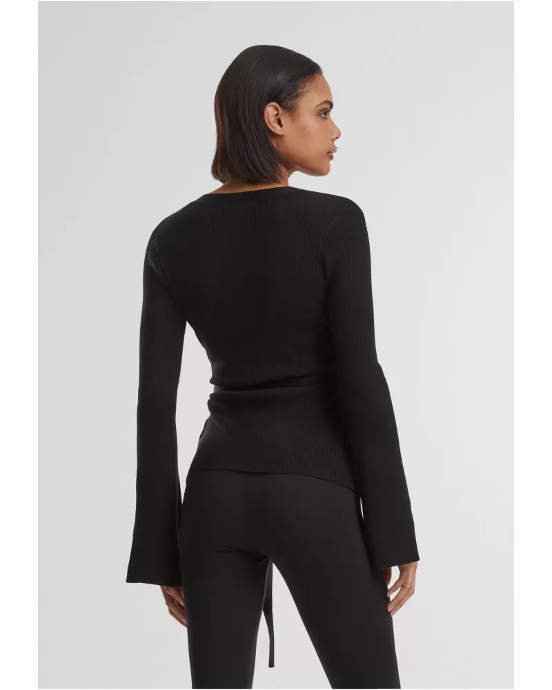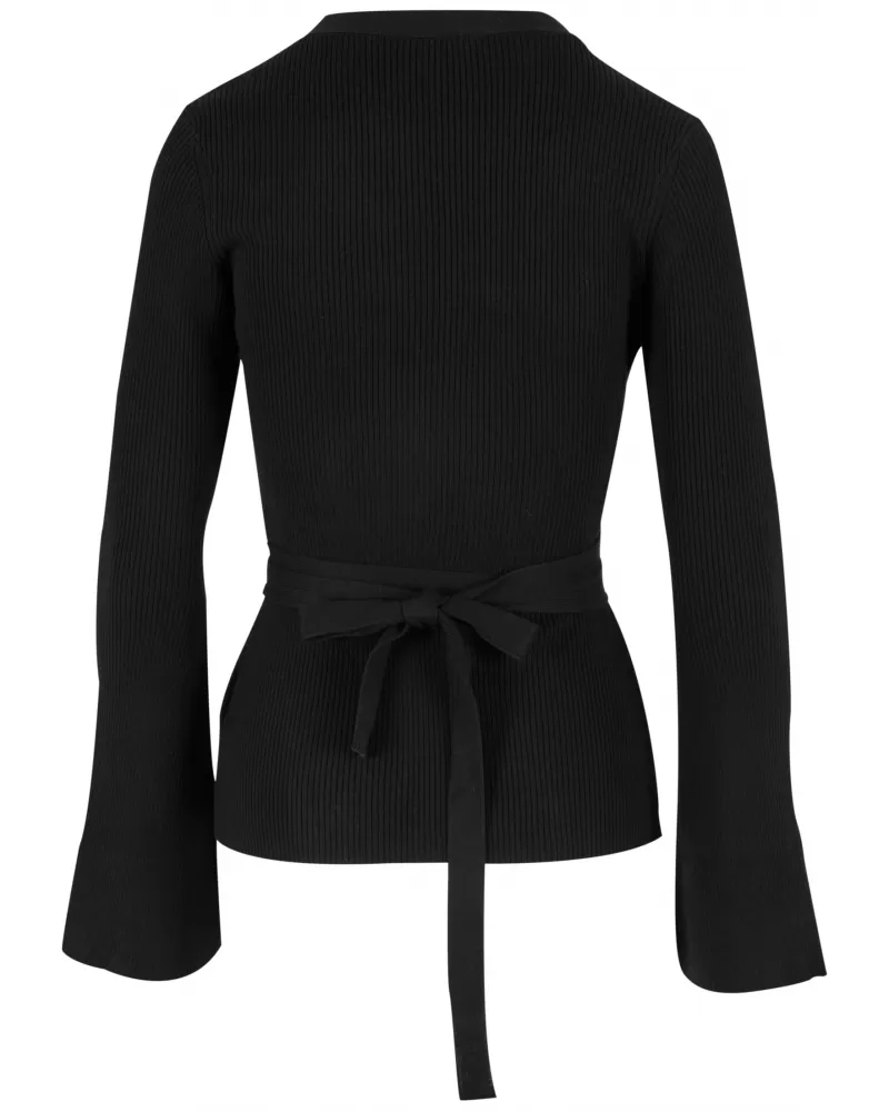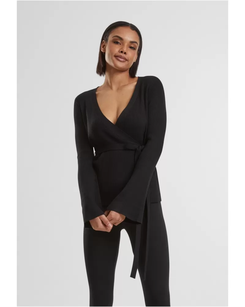 Dámský jednobarevný dámský úpletový top, který se nosí klasicky omotaný a který si drží tvar díky malému knoflíku na vnitřní straně. Pásek doplňuje outfit jako harmonický detail. Zavinovací kardigan navíc nabízí výstřih do V a široké rozšířené rukávy, které obohacují vzhled. Top je vyroben z akrylu, viskózy a nylonu a má pohodlný regular fit.