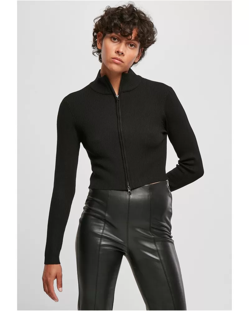 Jednobarevný dámský žebrovaný kardigan je vybaven chytrým dvoucestným zipem a malým stojáčkem. Zvolenou zkrácenou délku dokonale zvýrazňují... Celý popis