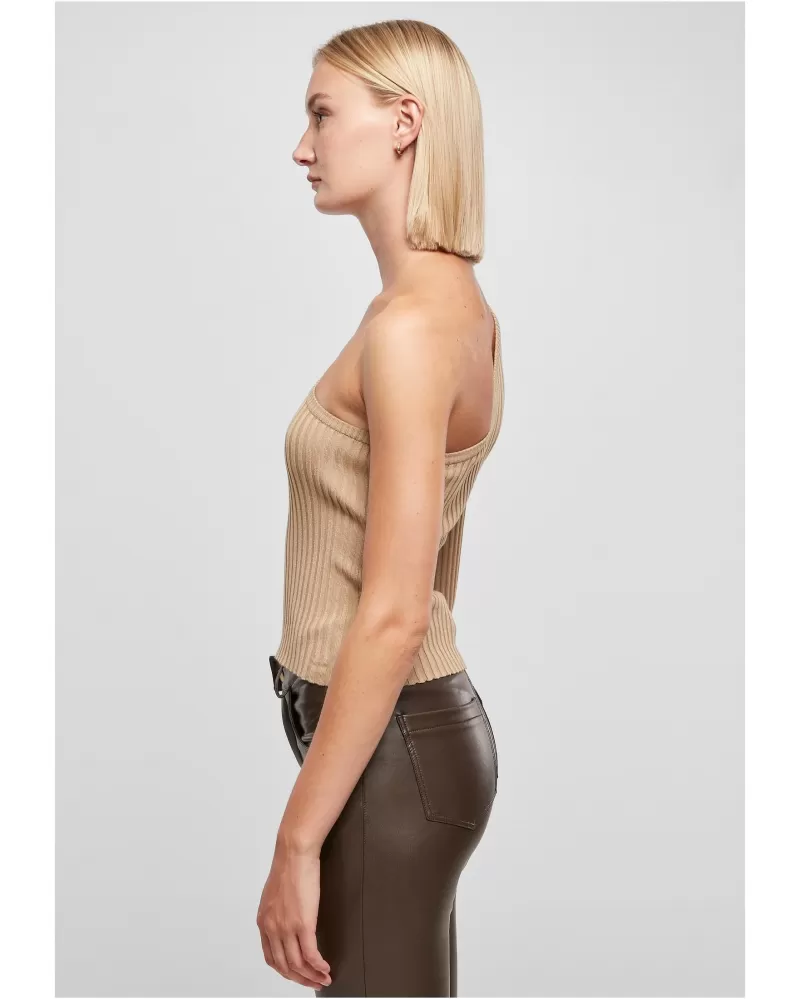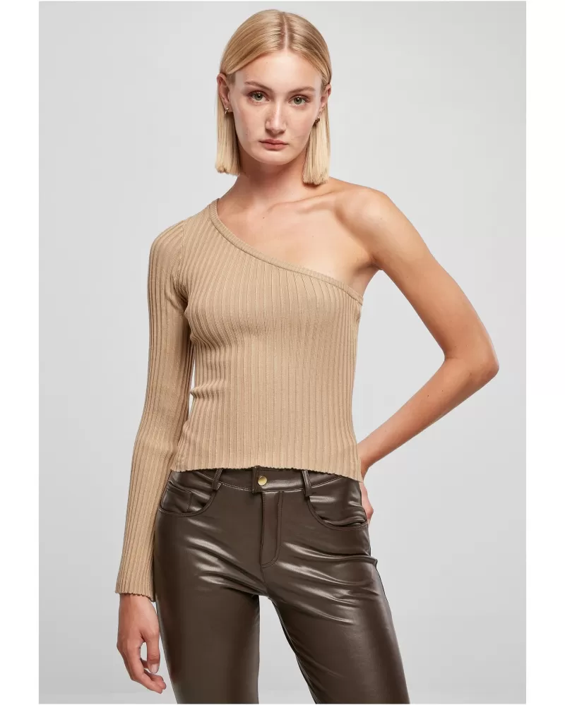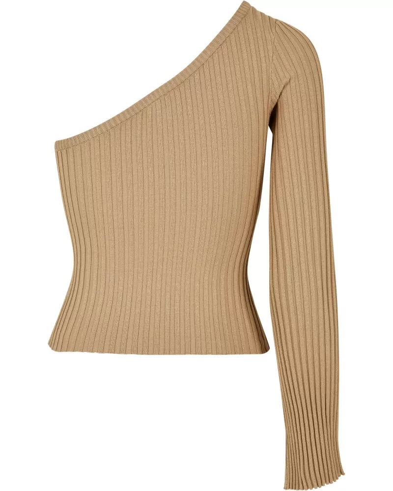 Pokud jste fanouškem svetrů na rameno, tento top vás určitě nadchne. Náš asymetrický svetr je skvělým doplňkem jakéhokoli stylingu. Díky žebrovanému úpletu vypadá tento top přes rameno perfektně i bez šperků.