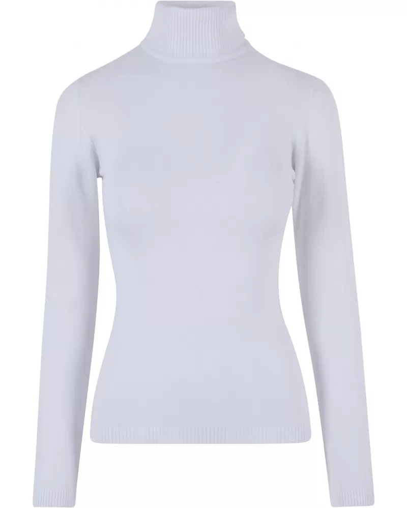 Dámský pletený svetr s rolákem, který kombinuje eleganci a pohodlí. Svetr je vyroben z hladké směsi viskózy a nylonu, což mu dodává vynikající pocit, zatímco jemná pletená struktura poskytuje stylový vzhled. Díky slim fit střihu se svetr dokonale přizpůsobí tvaru těla své nositelky a decentně podtrhne siluetu. Dlouhé rukávy navíc zahřejí i v chladnějších dnech, zatímco rolák završuje design s klasickým nádechem a ochranou před chladnými poryvy. Nezbytný základ.