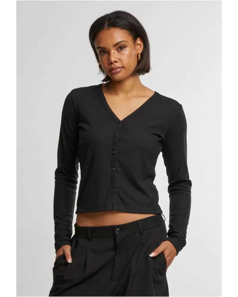 Tento dámský svetr URBAN CLASSICS je vyroben z kvalitního a na omak velmi příjemného materiálu v přiléhavém střihu. Rukávy a spodní okraj jsou zakončeny pružnými manžetami. Díky originálnímu designu, výstřihu do V a rozepínáním na knoflíky se skvěle hodí do zaměstnání i neformální společenské akce. V tomto svetru se budete cítit vždy komfortně a stylově.