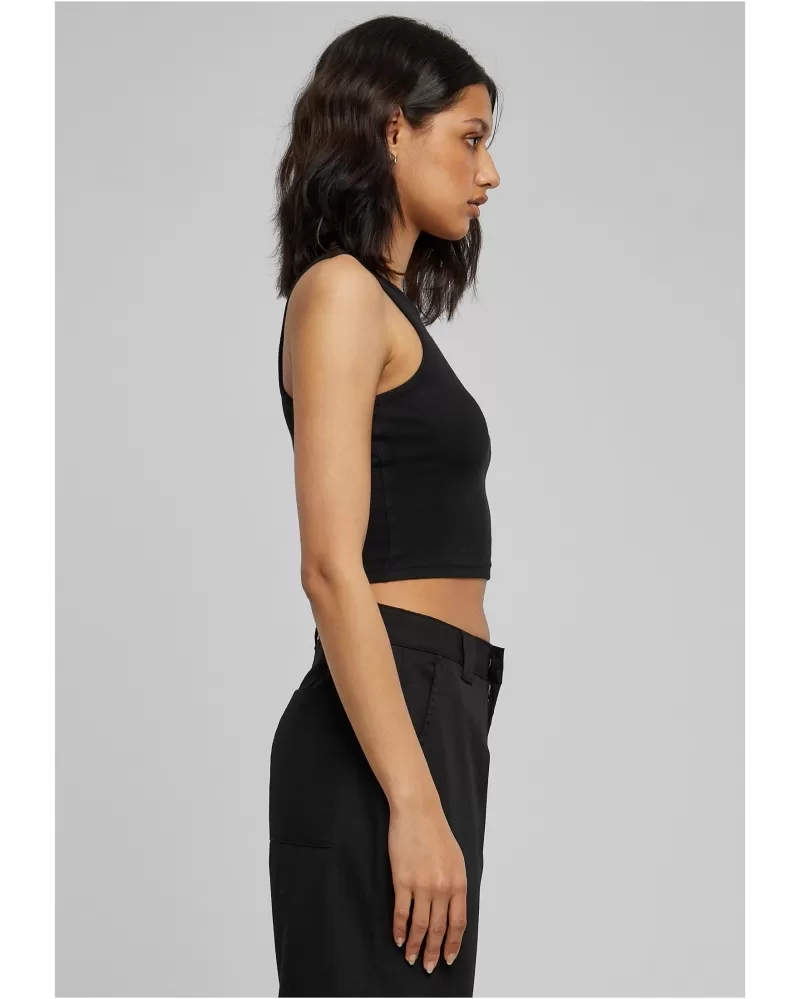 Dámský Cropped Rib Top URBAN CLASSICS TB1498  připomíná 90. léta.  Kombinujte top se svými oblíbenými džínami, šortkami nebo sukní v midi délce. Strečová tkanina zajišťuje perfektní padnutí a vysoký komfort nošení. Tílko můžete využít jak ve volném čase,do města i na turistiku. Složení materiáku 97% bavlna,3% elastan.