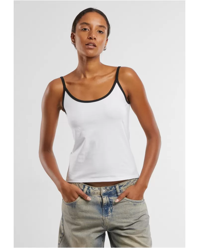 Jednoduché a pohodlné èernobílé tílko v praktickém dvojbalení („2‑pack“) — základní kousek do šatníku, který nesmí chybět. Lehký strečový materiál přiléhá k tělu a nabízí pohodlí na celý den, ať už jako vrchní část outfitu nebo pod další vrstvu.