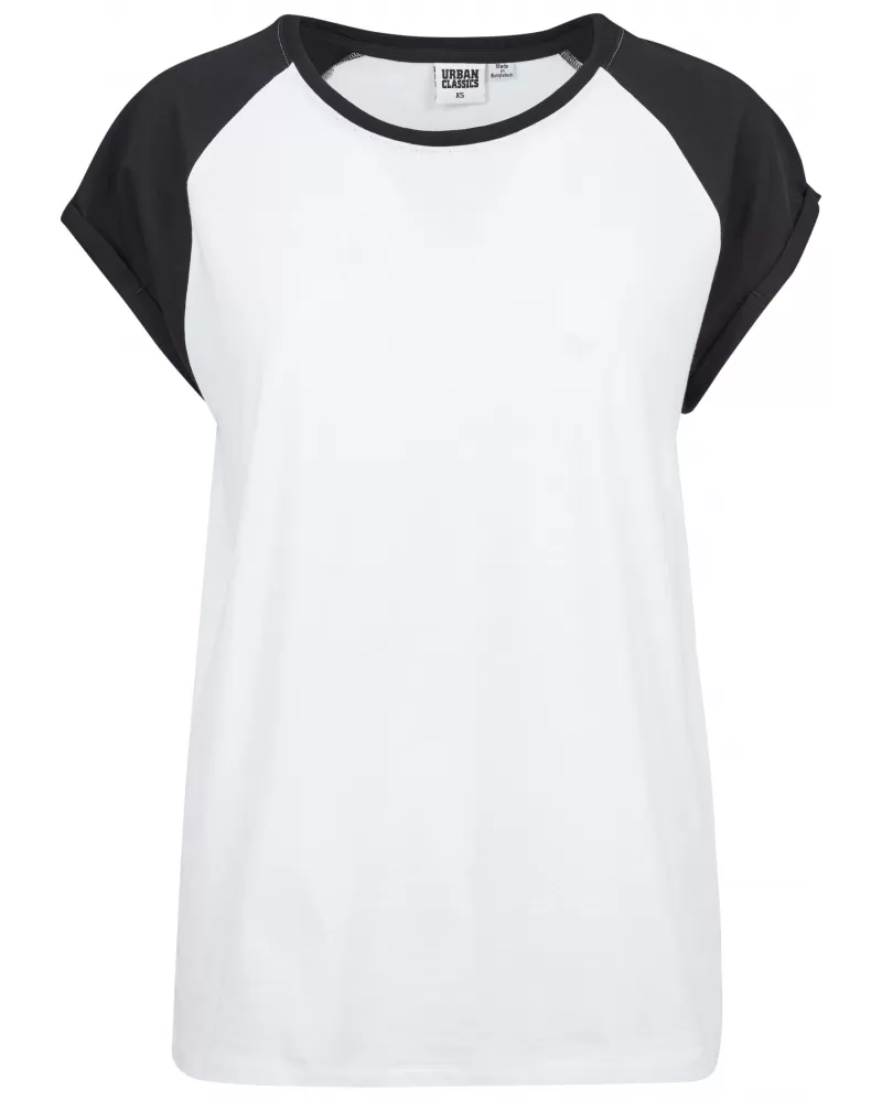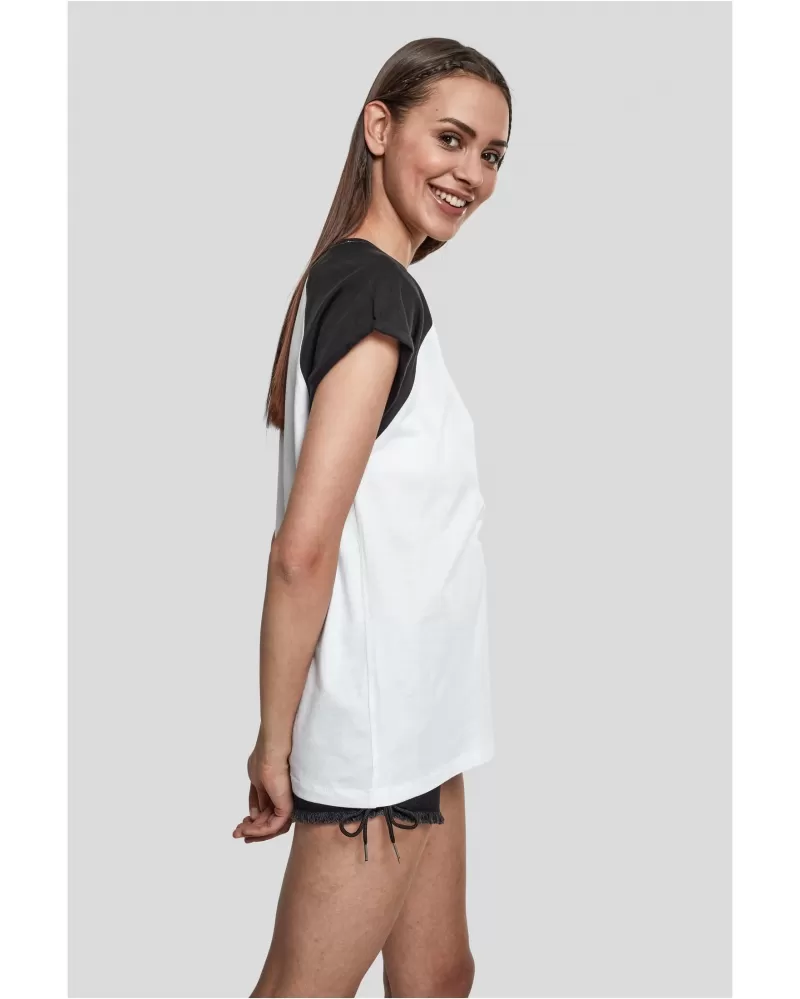 Dámské raglánové tričko Urban Classics v kontrastu je ideální pro obzvlášť uvolněné oblečení. Toto tričko s krátkým rukávem kombinuje měkkou žerzejovou tkaninu se sportovním oversized střihem a barevně kontrastními raglánovými rukávy, díky čemuž je ideální košilí pro dobrý pocit. Běžný střih a kulatý výstřih nabízejí pohodlné nošení a zdůrazňují neformální sportovní vzhled. Toto tričko je dostupné v různých barvách a ve velikostech XS až 5XL a hodí se pro širokou škálu stylů a je nezbytným základem každého šatníku.