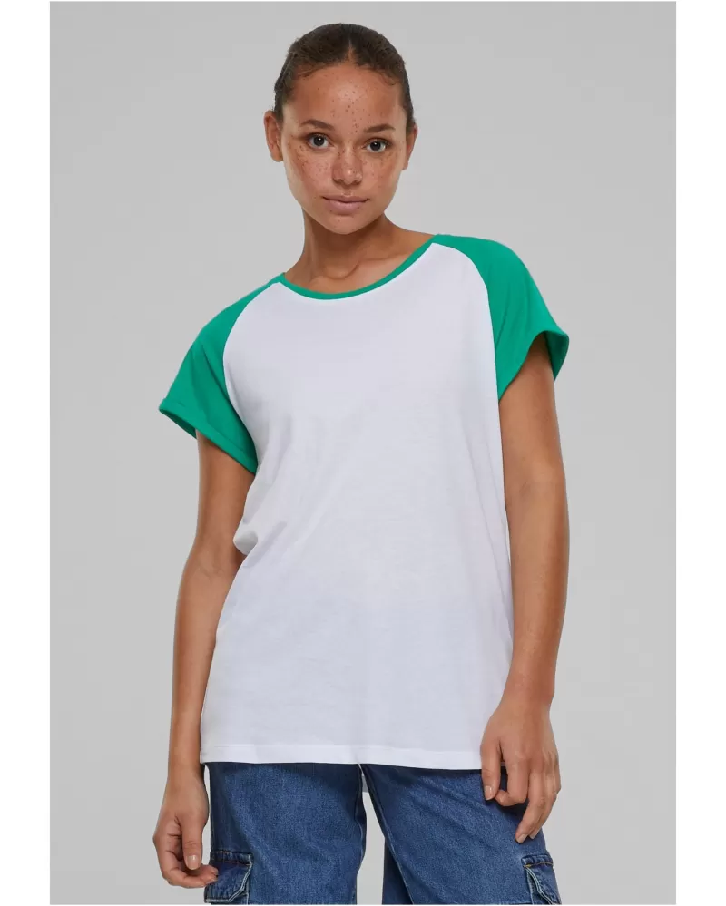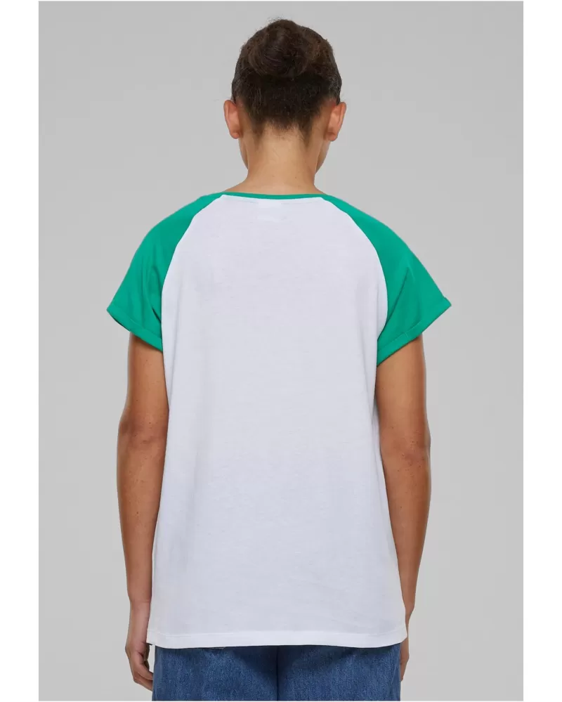 Dámské raglánové tričko URBAN CLASSICS TB1913. Toto tričko s krátkým rukávem kombinuje měkkou žerzejovou tkaninu se sportovním oversized střihem a barevně kontrastními raglánovými rukávy. Běžný střih a kulatý výstřih nabízejí pohodlné nošení a zdůrazňují neformální sportovní vzhled. Triko je vhodné na sportování, na procházky, do přírody. Složení materiálu 90% bavlna, 10% viskóza.