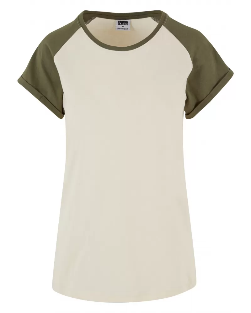 Dámské triko URBAN CLASSICS TB1913 WHITE SAND/OLIVE velikost: XXL