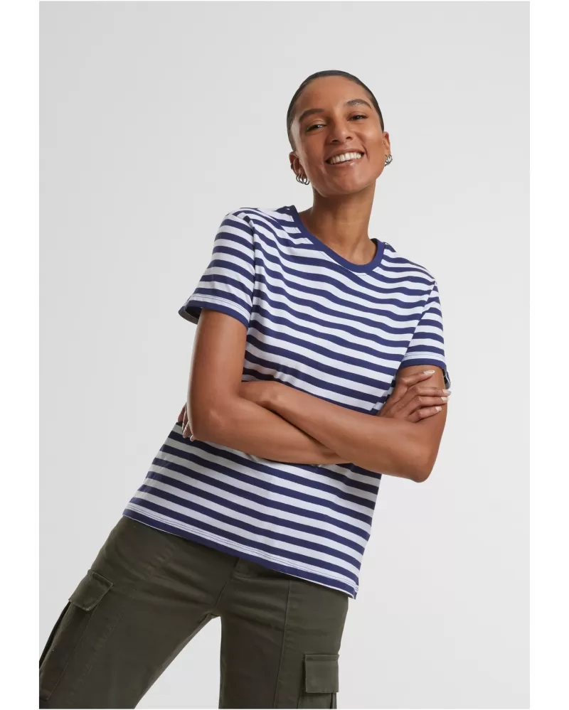 Uvolněné, pohodlné a trendy: dámské tričko s klasickým pruhovaným vzorem je nutností pro každou ženu, která záleží na módě. Toto pruhované... Celý popis