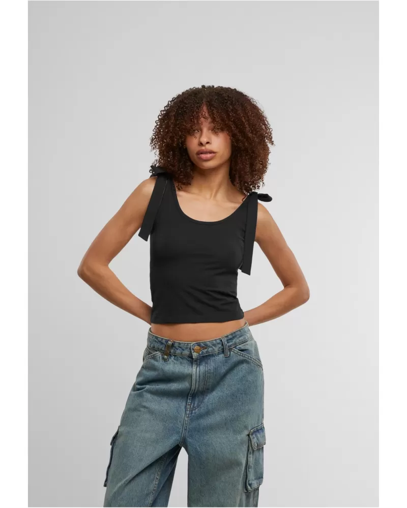 Dámské triko URBAN CLASSICS na ramínka a kulatým výstřihem. Je vyrobeno z kvalitního bavlněného materiálu, který má polopřiléhavý střih a je příjemný na omak.Skvělý kousek oblečení do Vašeho letního šatníku