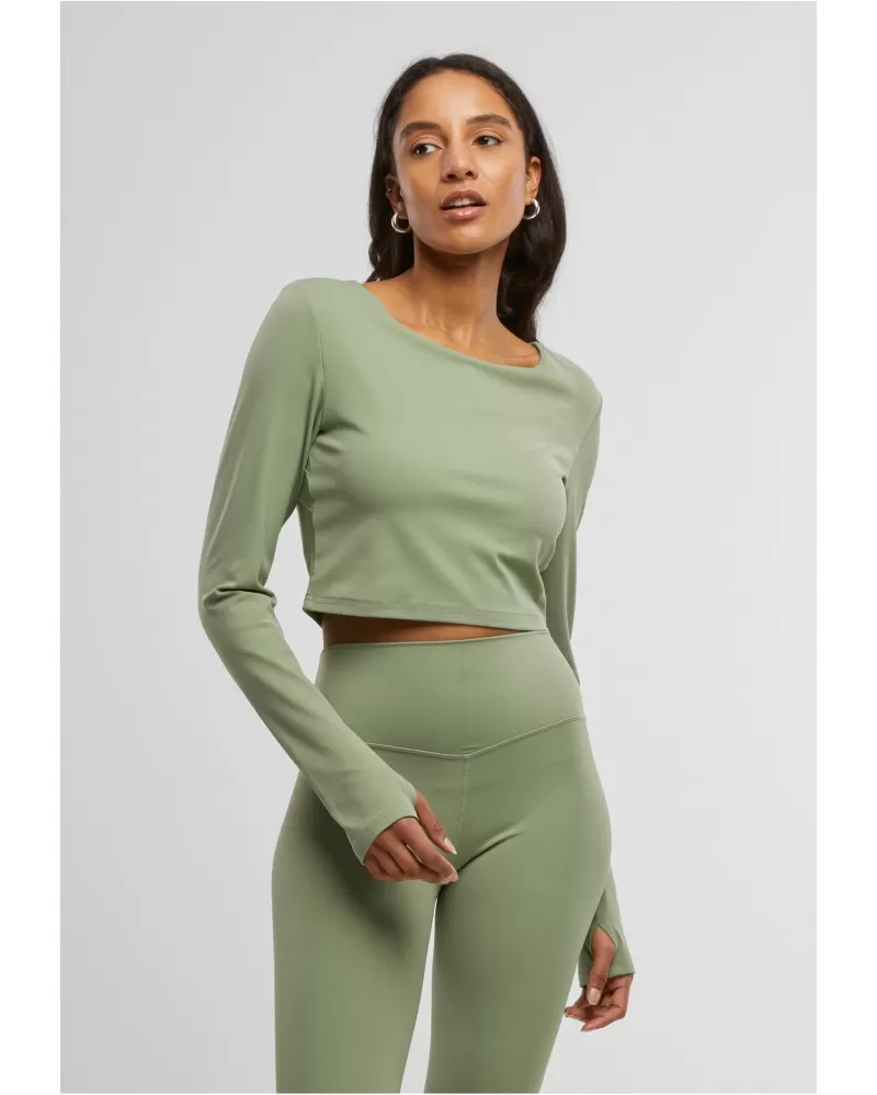 Stylové a funkční triko s dlouhými rukávy, které kombinuje sportovní design s moderní estetikou. Díky jemně elastickému materiálu jemně kopíruje křivky postavy a poskytuje pohodlí po celý den. Crop délka s nápadným střihem je skvělým doplňkem nejen pro sporty, ale i ležérní outfity.